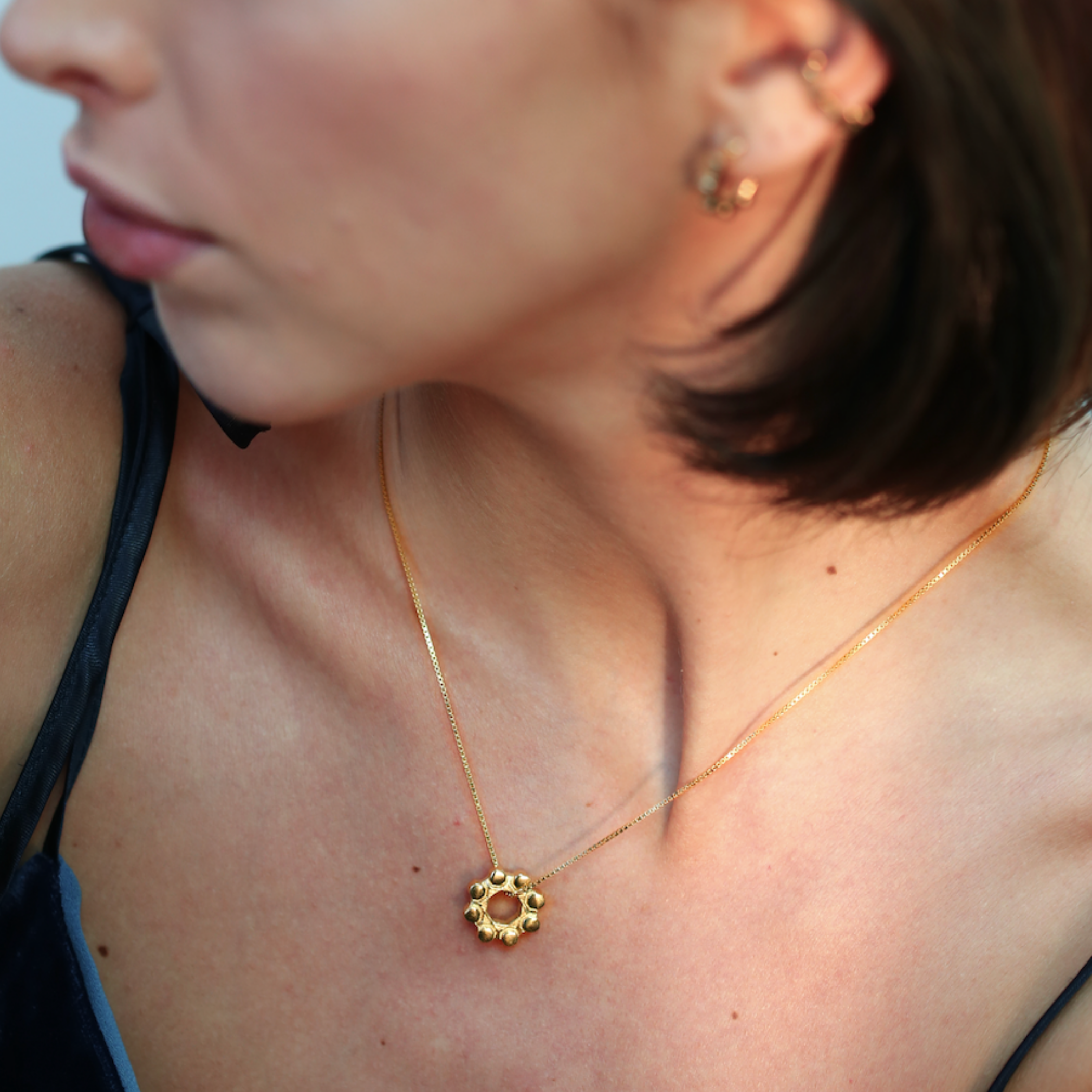 La sua pianta ottagonale diventa una protagonista preziosa grazie al design di questo ciondolo.