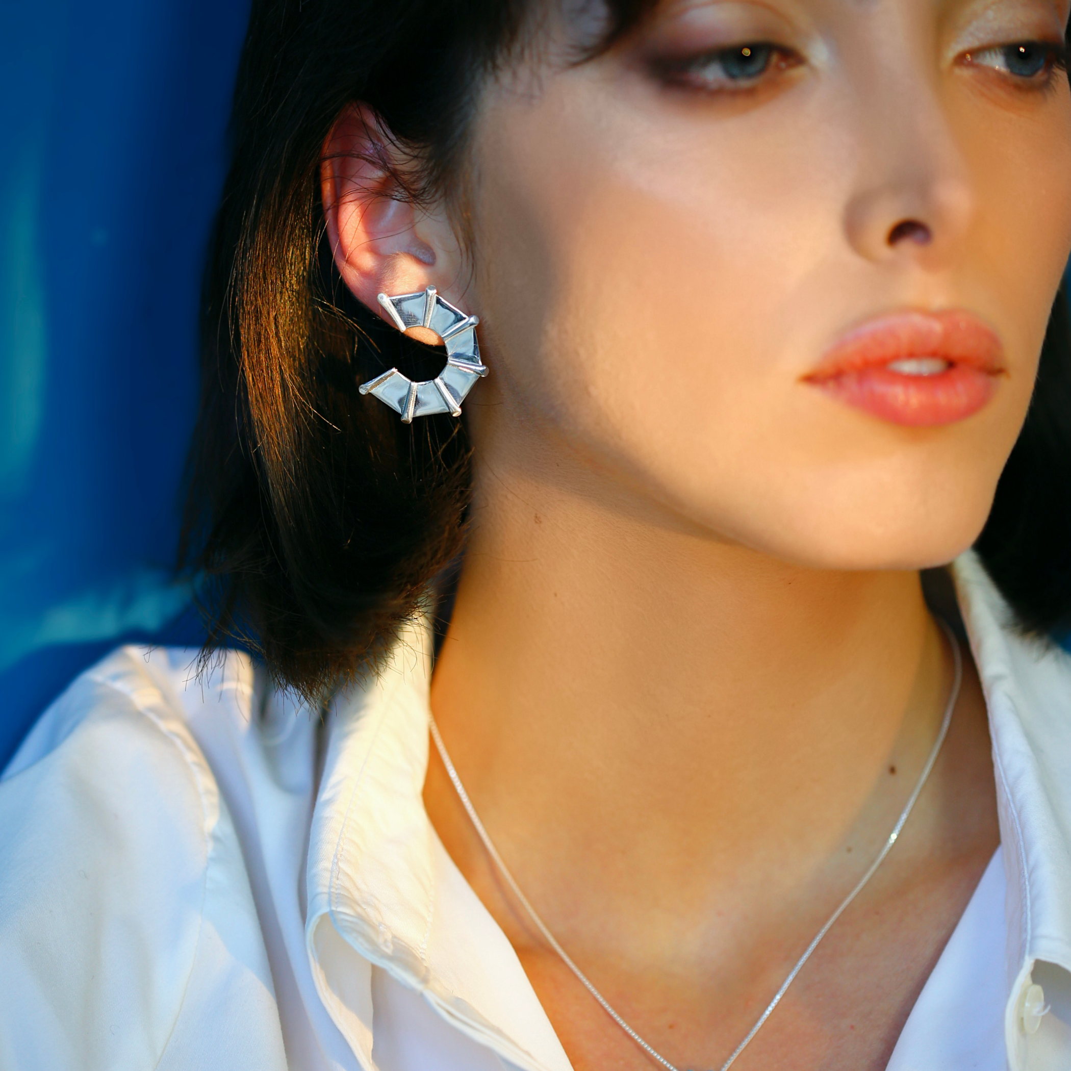 Questi orecchini si ispirano alla sua pianta ottagonale, che rappresenta un unicum rispetto alle costruzioni difensive dell’epoca. E sono come Castel del Monte: imponenti e indimenticabili.