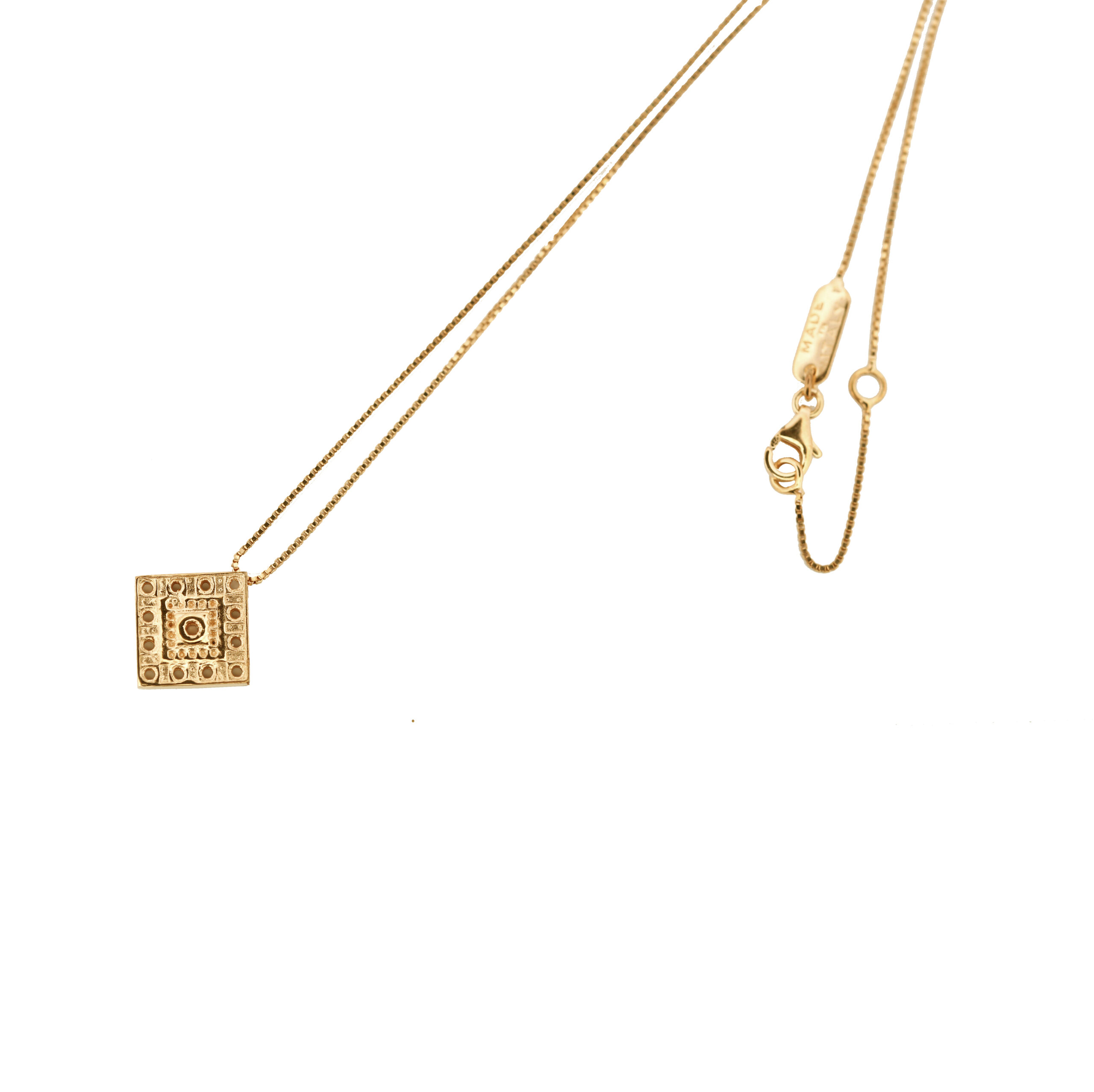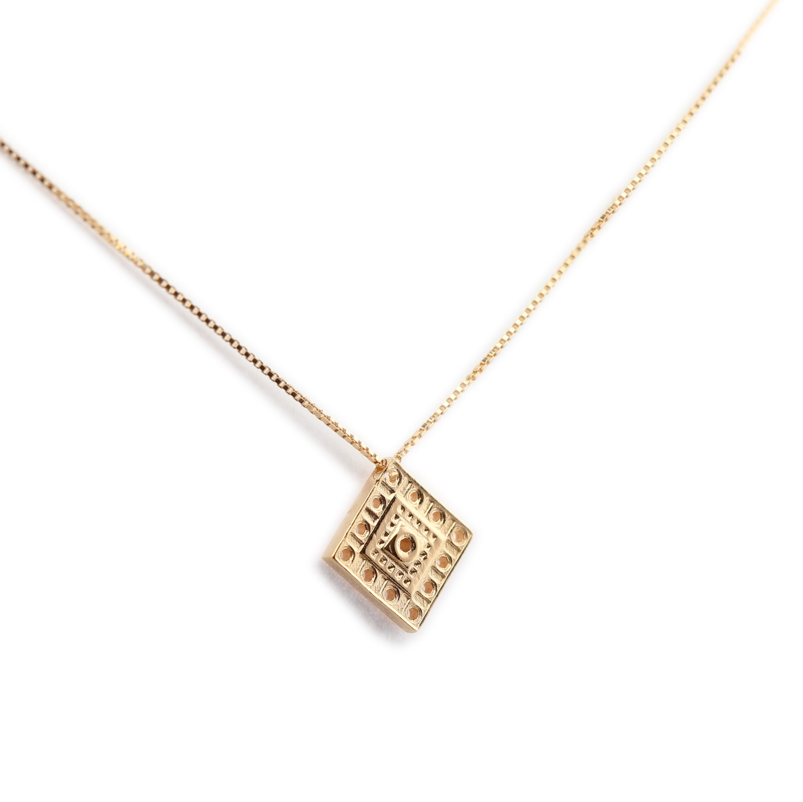 Come un tassello rubato dalle centinaia di mattonelle arabesche che compongono la facciata dell’Institut du Monde Arabe di Parigi, questo ciondolo è un’estrema, ammaliante sintesi di Europa e Medioriente.