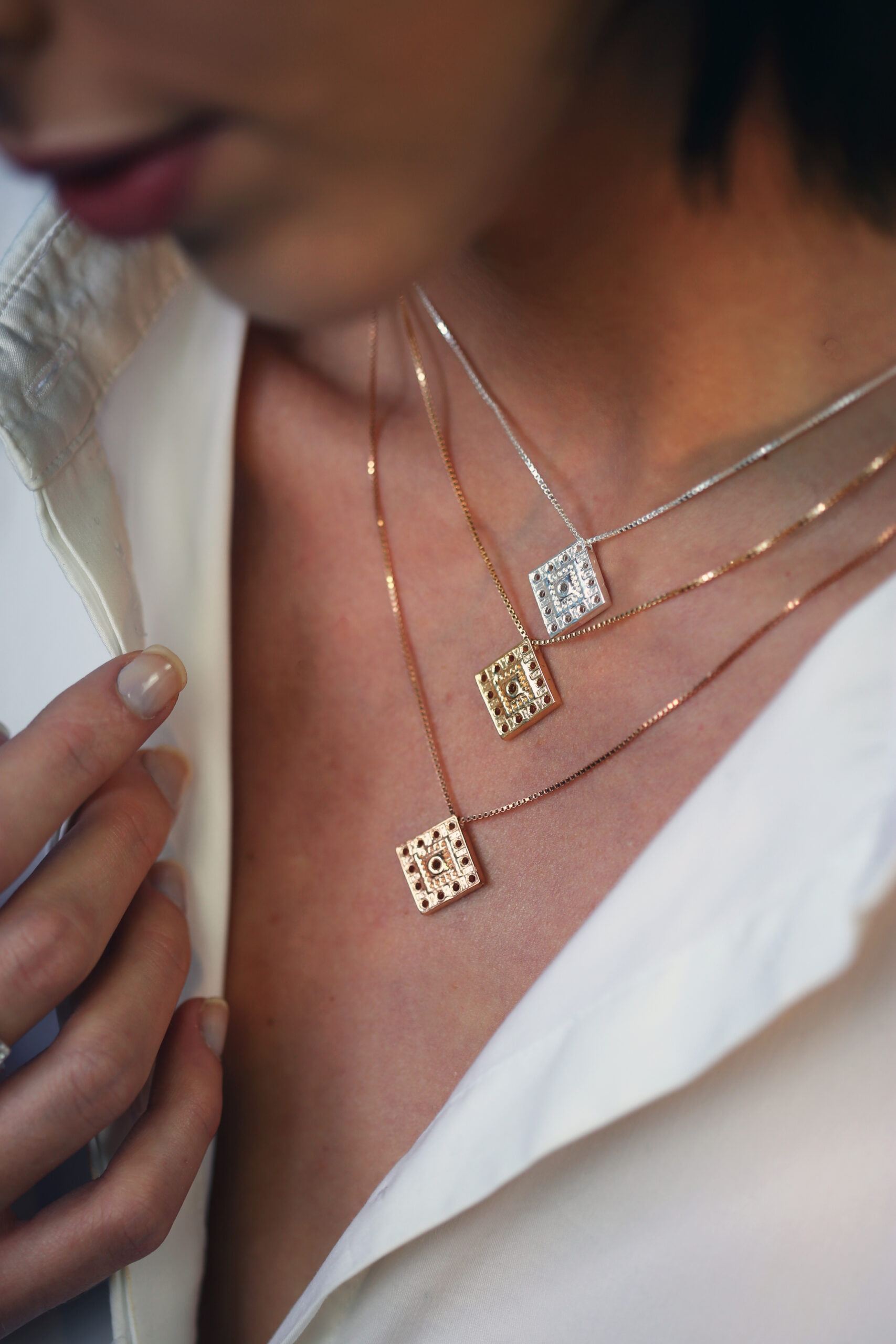 Tutti i nostri gioielli sono realizzati in argento 925: trattato per evitare l’ossidazione, oppure con placcatura in oro a spessore(Vermeil). Altri articoli, come bracciali e modelli più pesanti, sono realizzati in bronzo placcato oro per mantenere dei prezzi accessibili. Se desideri uno dei nostri modelli in argento o oro, contattaci per un preventivo.