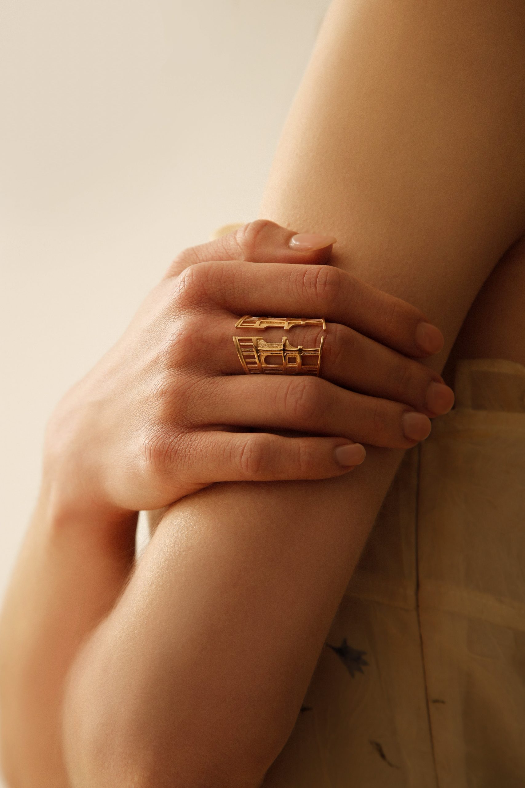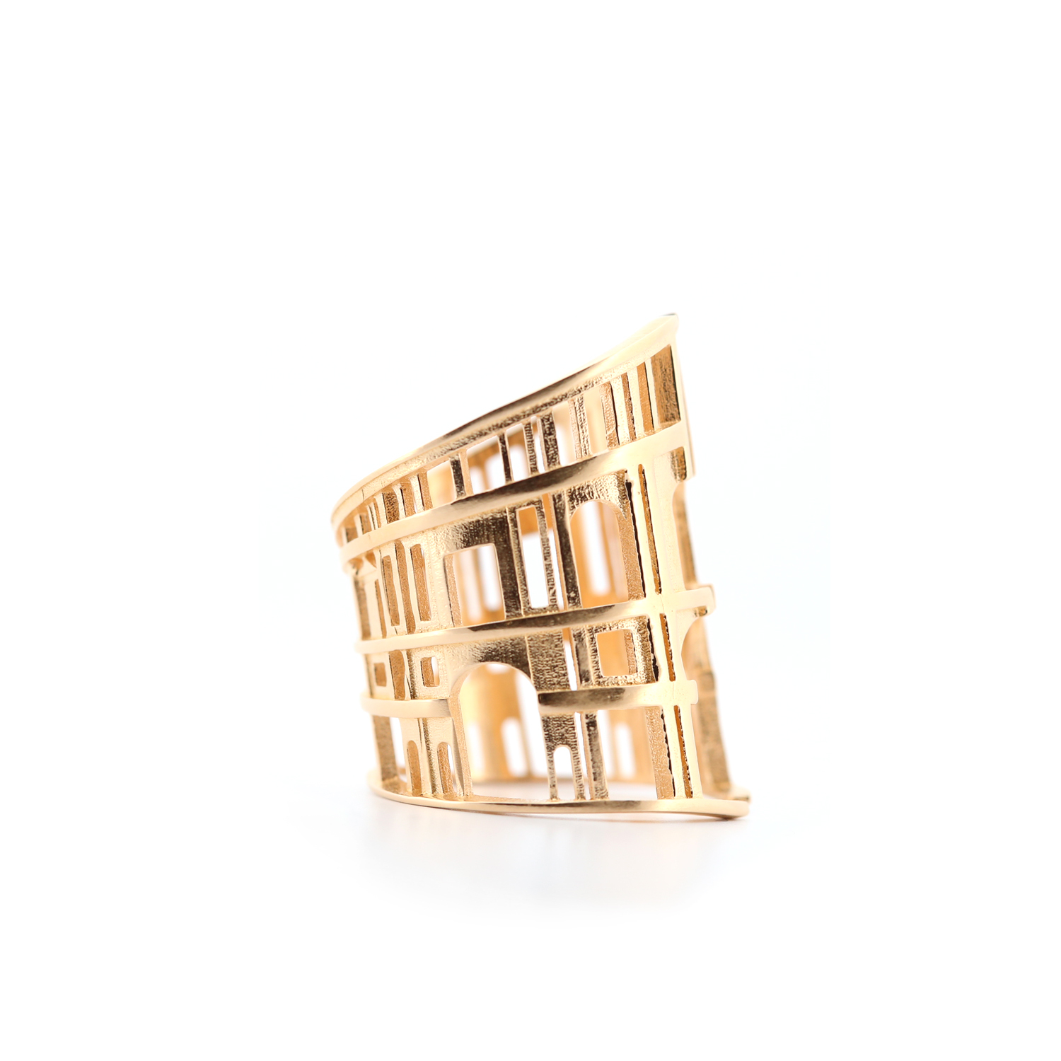 Questo anello di minuscola monumentalità è uno studio prospettico della Galleria degli uffizi, con le sue misure razionali e quell’affascinante, inspiegabile senso di leggerezza.