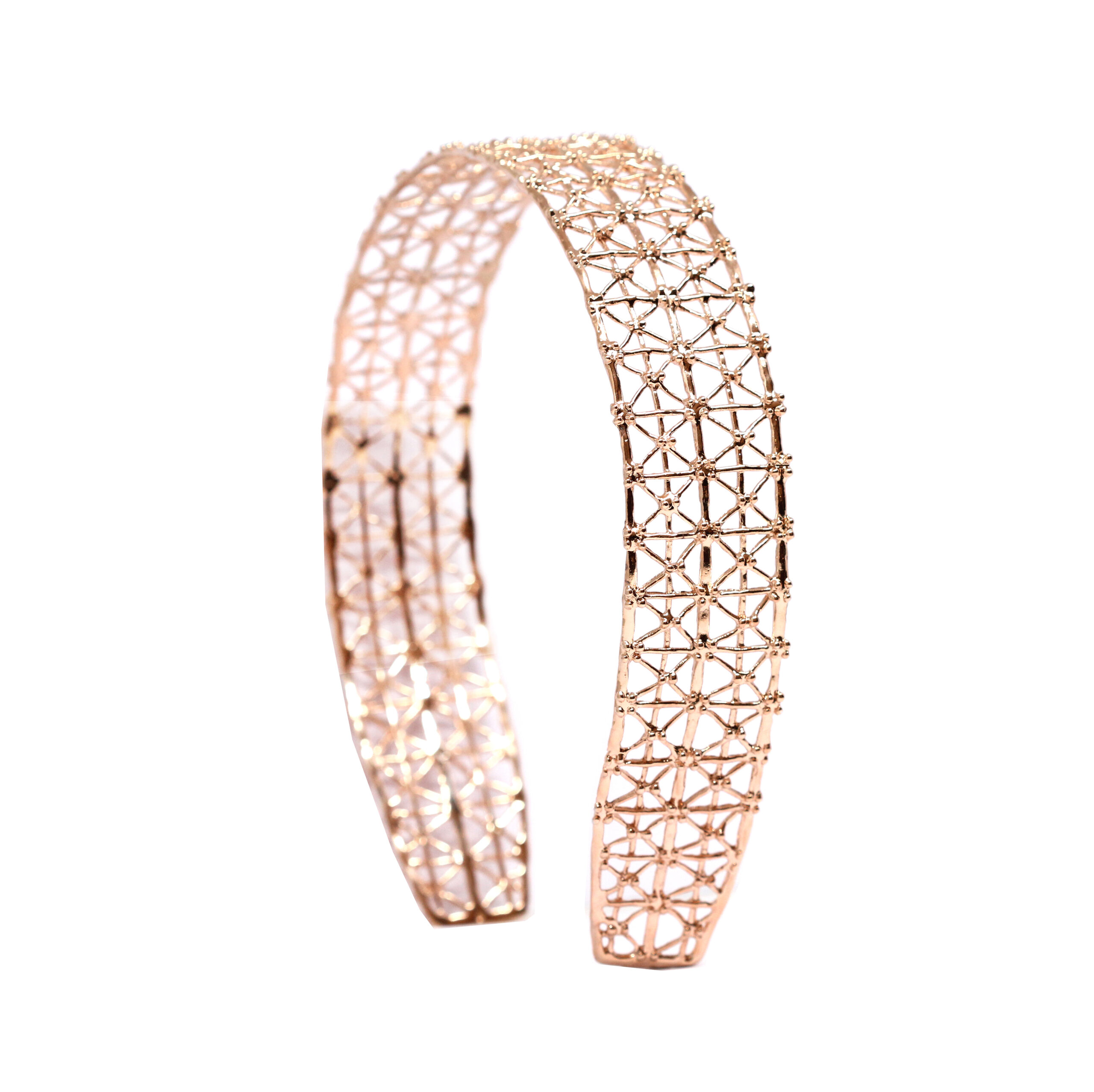 Nostalgia d’altri tempi, ruggenti visioni del futuro: le linee classiche del cerchietto in bronzo placcato oro rosa tirano fuori l’indole romantica del Gasometro romano.