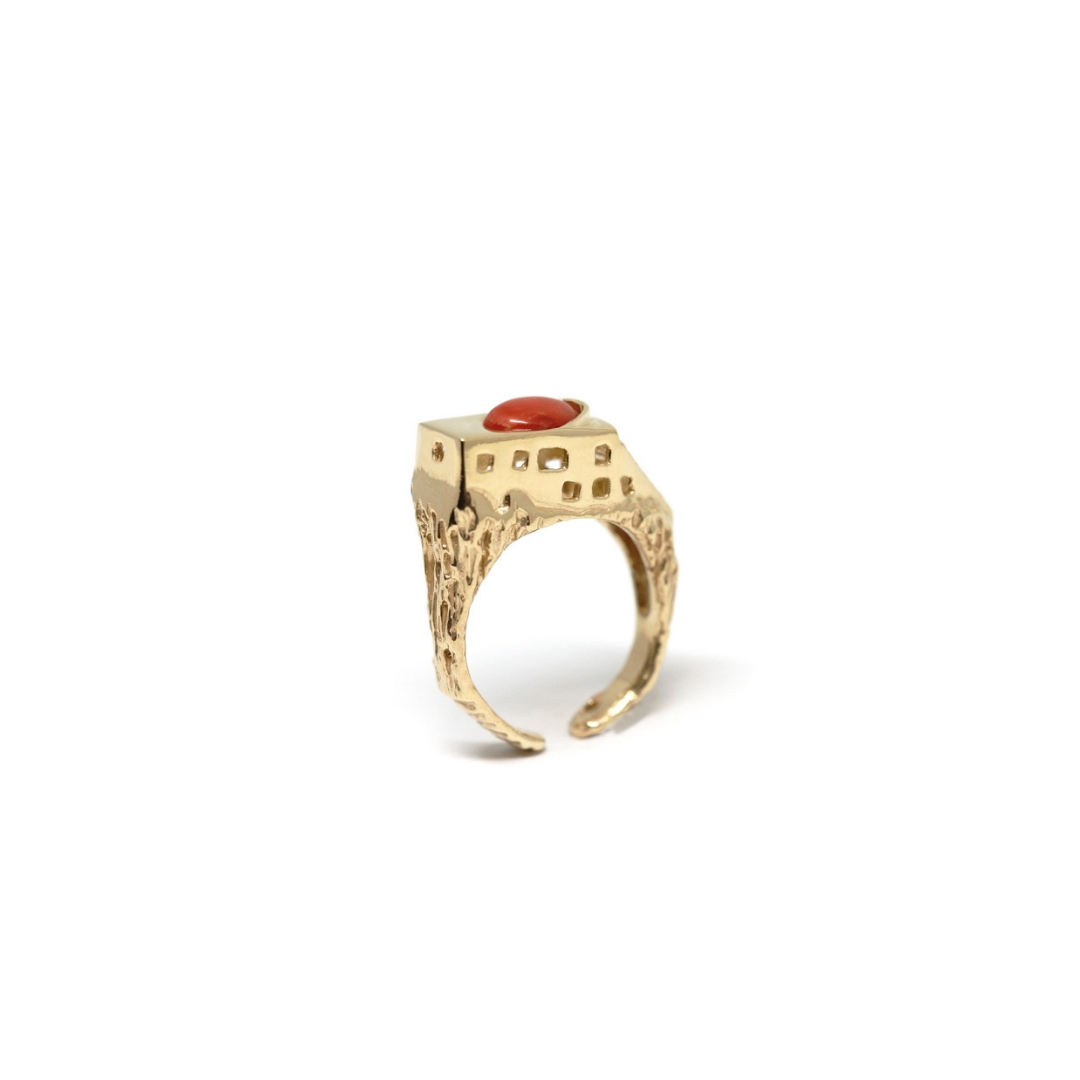 Anello Villa Malaparte in Argento Placcato Oro con Corallo