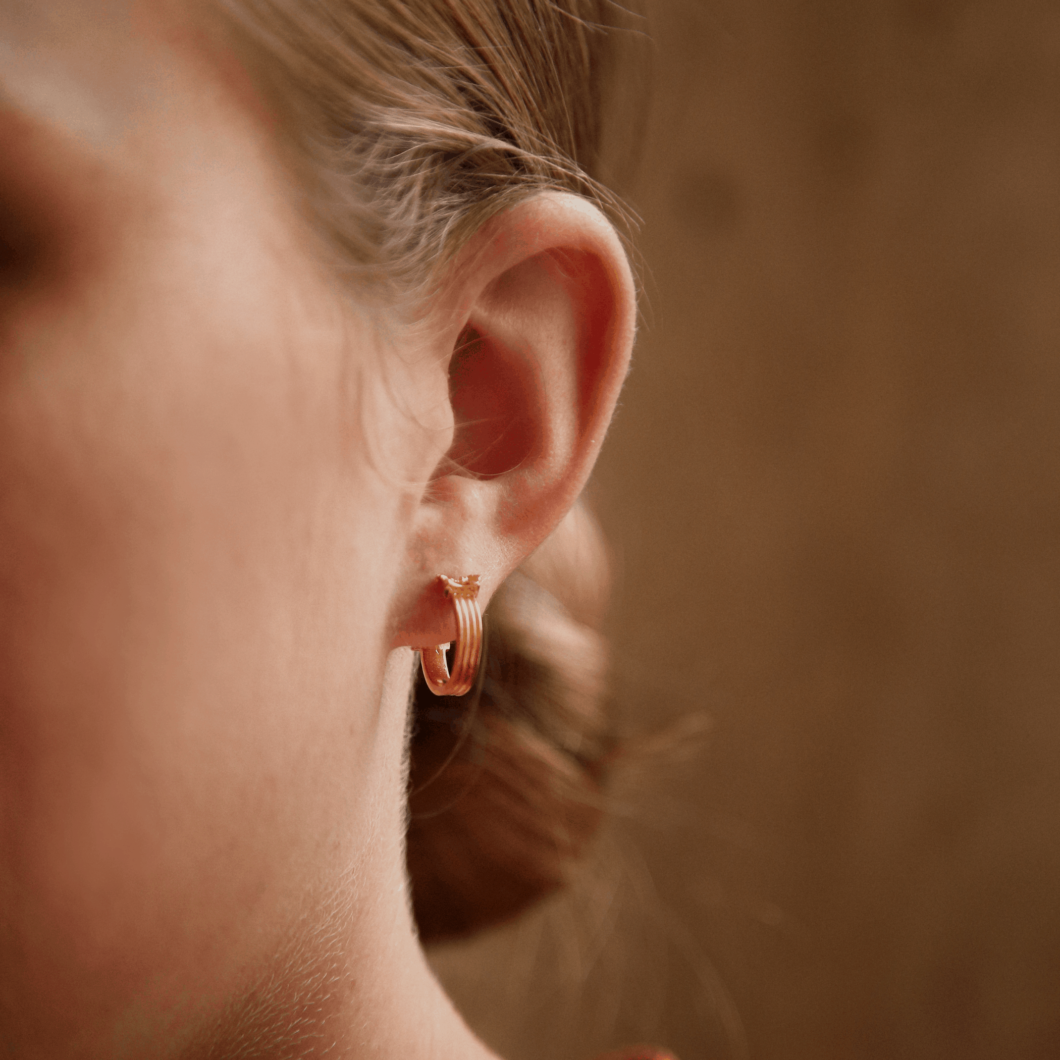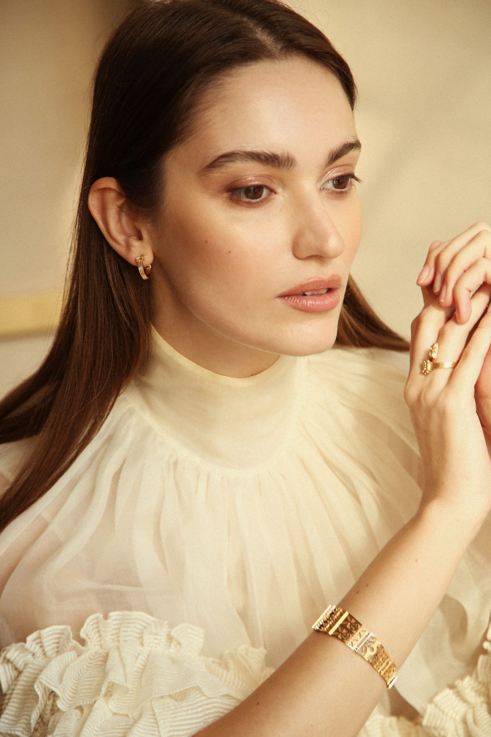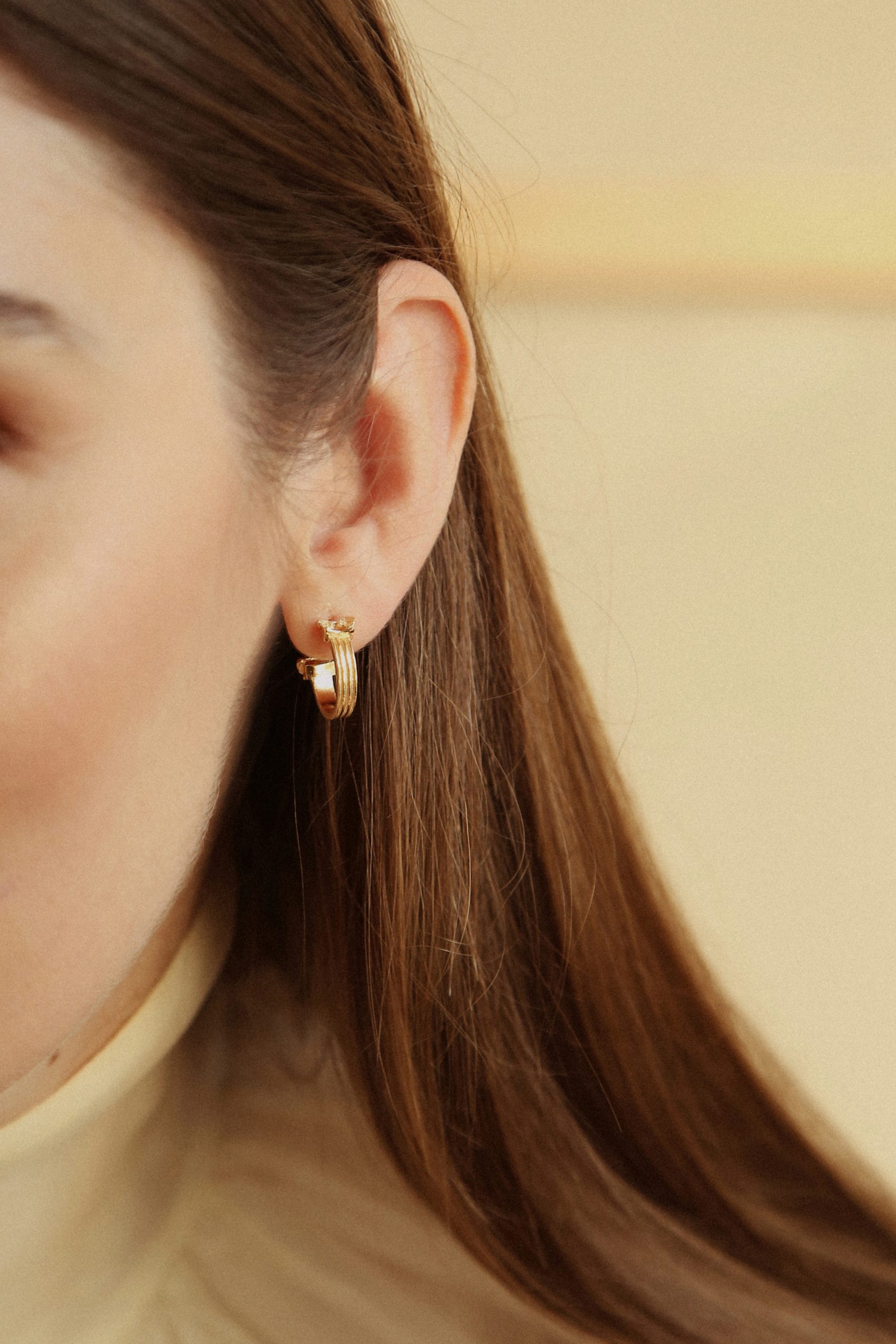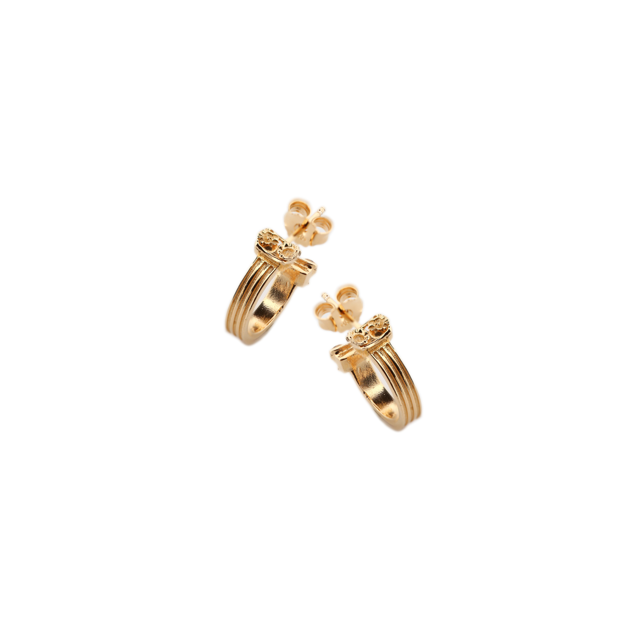 Simboli gioiosi, i capitelli dal motivo floreale sono un leit motiv dell’arte italiana. Questi orecchini a cerchietto ritraggono quelli che decorano la Meridiana di Villa Borghese, come a voler risvegliare il fascino sfavillante di un’epoca perduta.