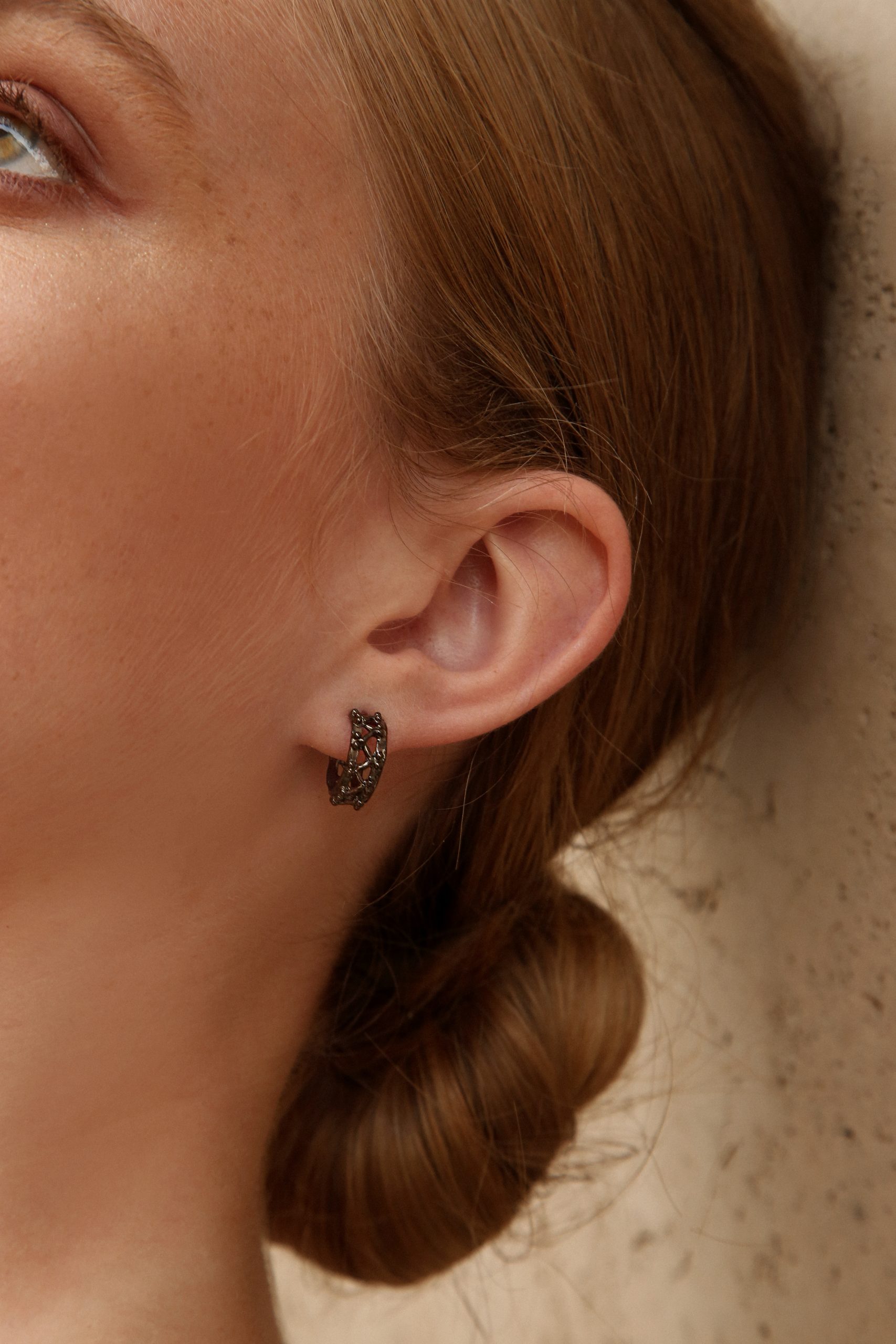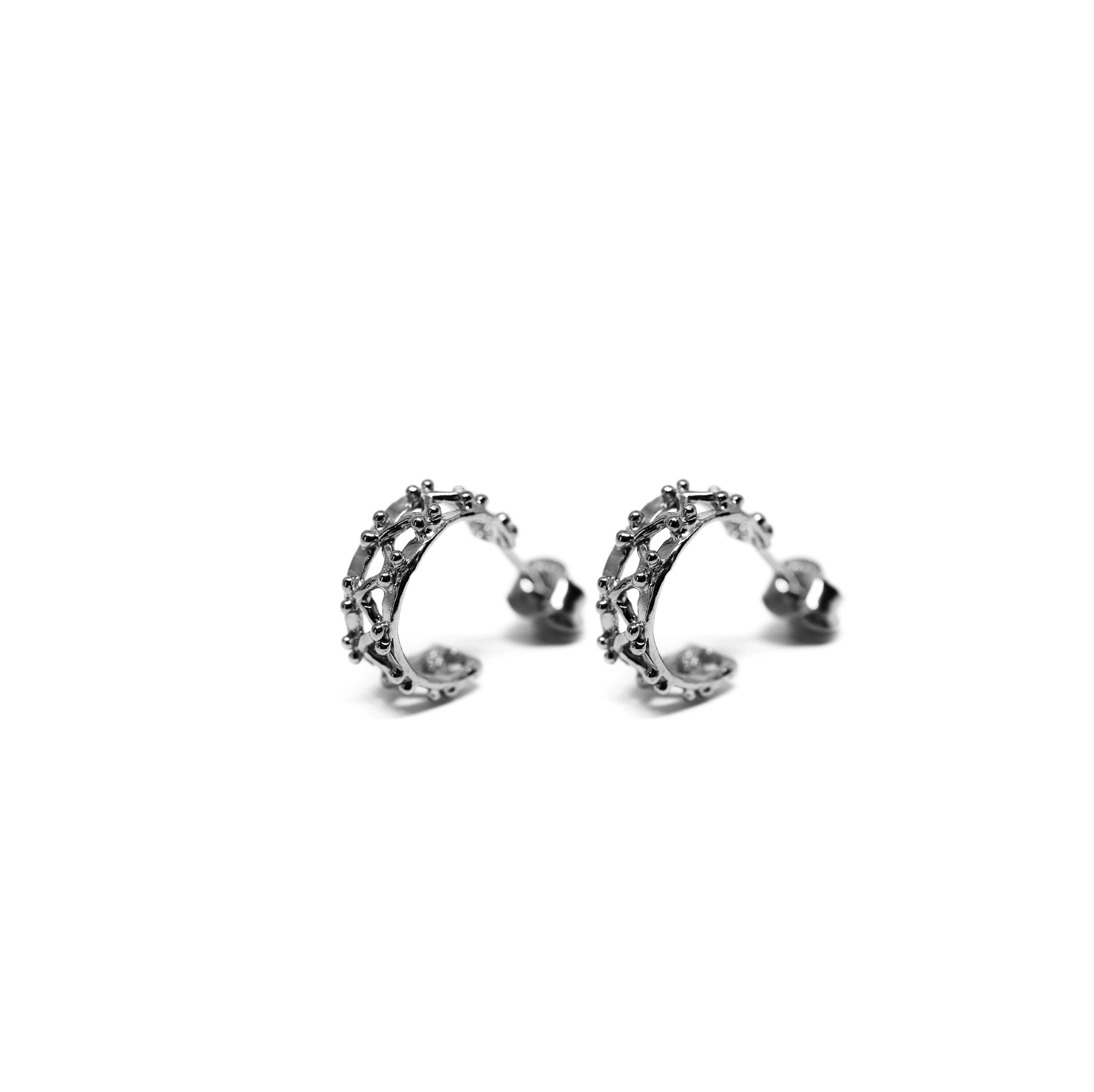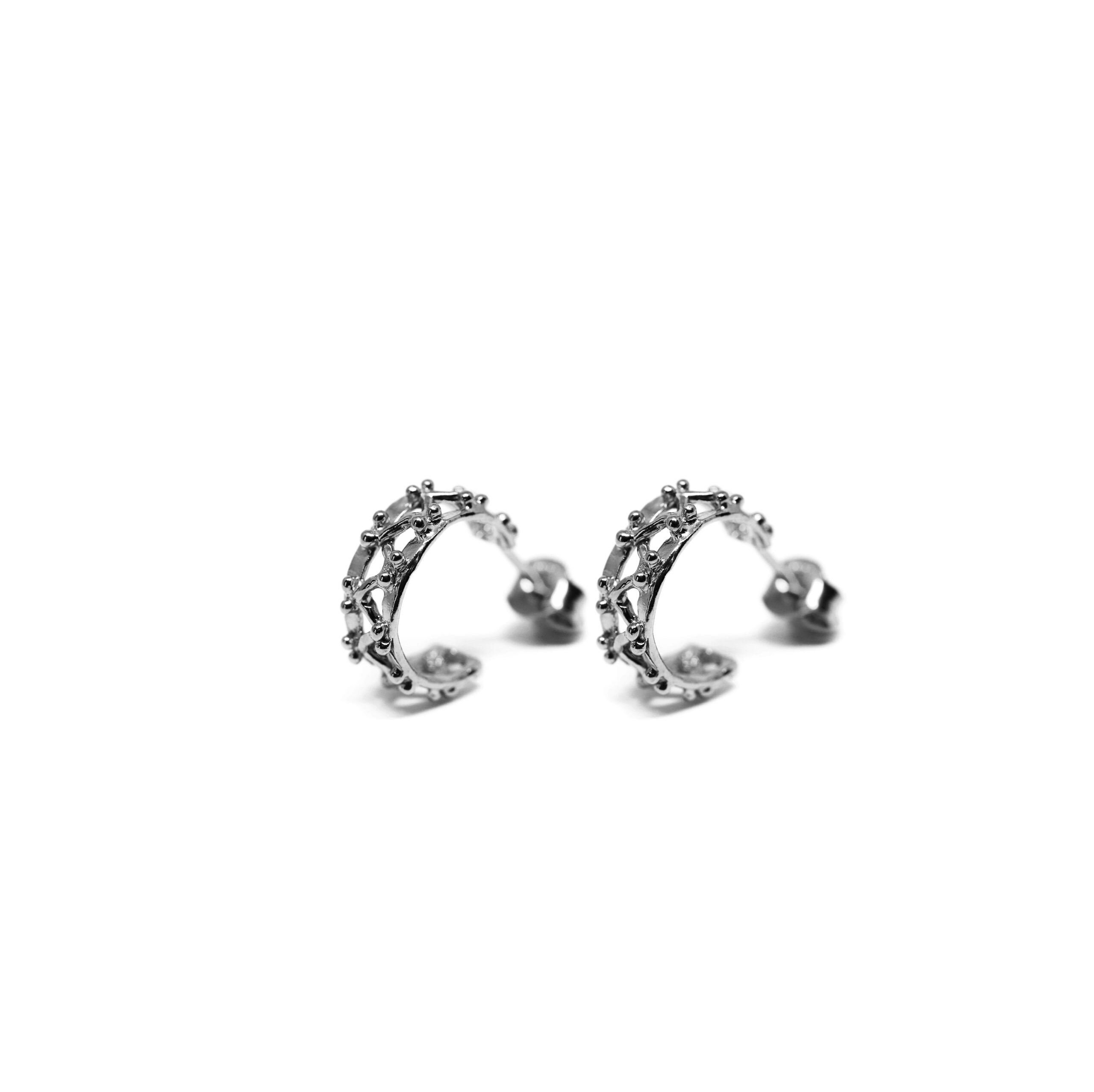 Le linee spigolose e futuristiche del carroponte si addolciscono in questi orecchini circolari placcati d’oro.