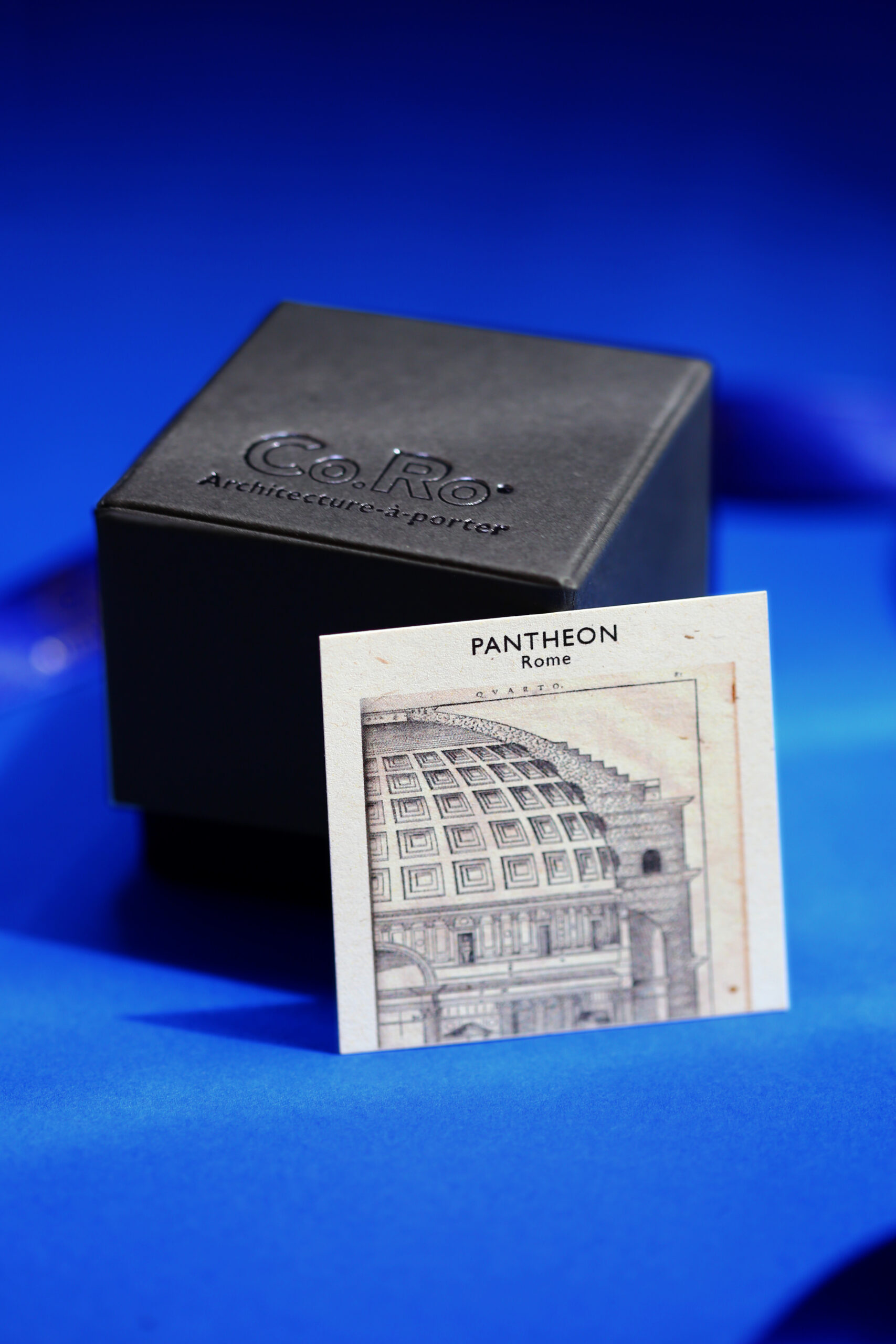Tra sacro e profano, luce e ombra, in questo ciondolo d’effetto sono impressi i lacunari che decorano l’immensa cupola del Pantheon, il “tempio degli dei”.