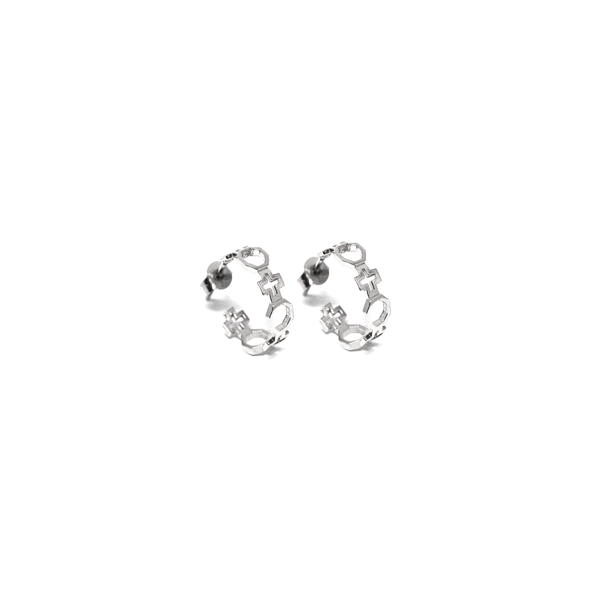 Questi orecchini gettano una luce diversa e minimalista al modernissimo motivo a ottagoni e croci che fa esplodere la cupola di San Carlo alle Quattro Fontane di potente teatralità.