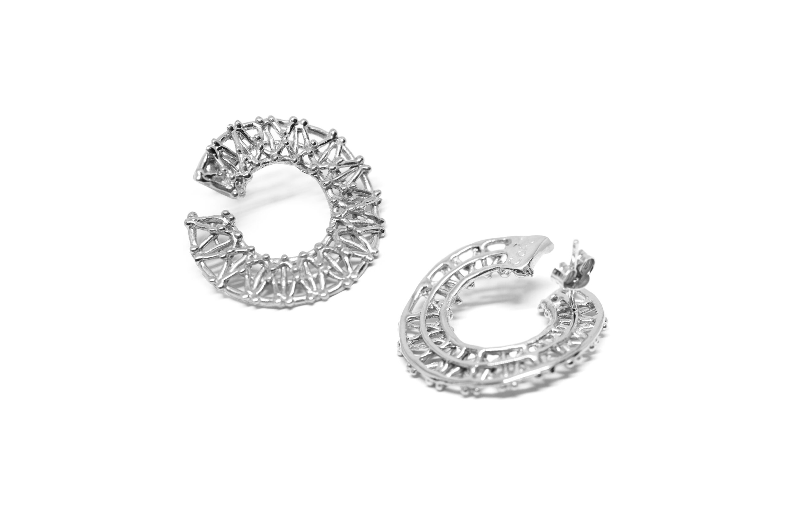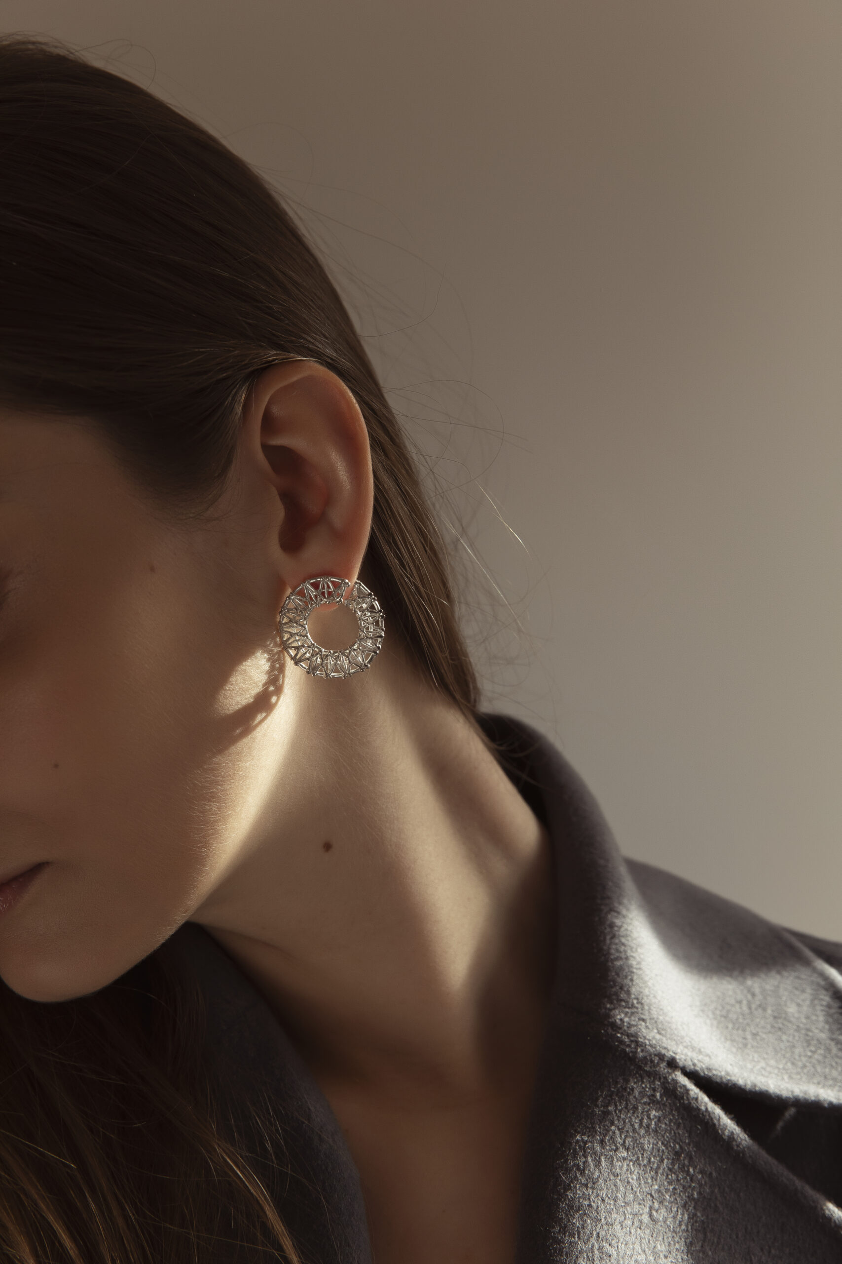 Il nostro orecchino a cerchio piatto è ispirato a una vera opera d’arte d’ingegneria industriale: il gasometro nel quartiere Ostiense di Roma.