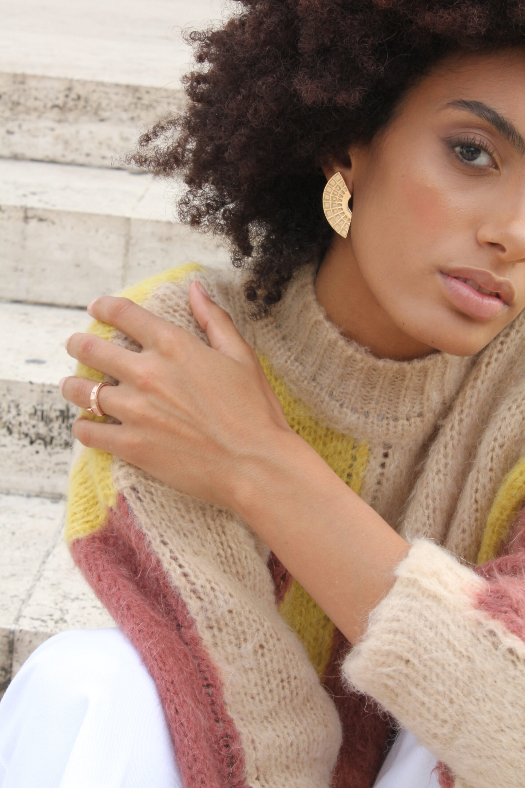 L’immensità della cupola del Pantheon tradotta in un orecchino ultramoderno e di grande impatto.