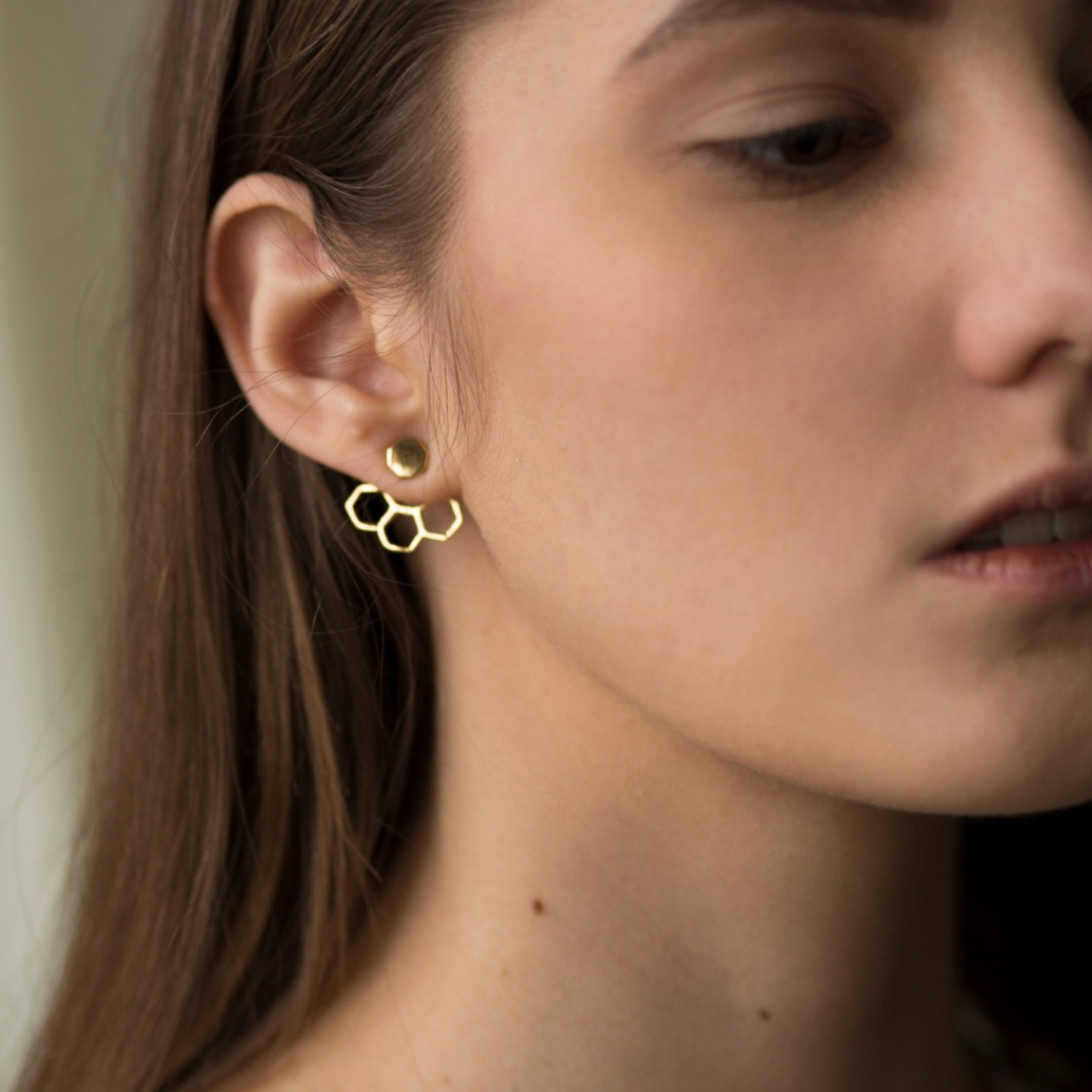 I nostri ear jackets Esagonini in argento 925 sono ispirati dalle geometrie minimal che si trovano in natura. Come ad esempio quelle di un alveare.