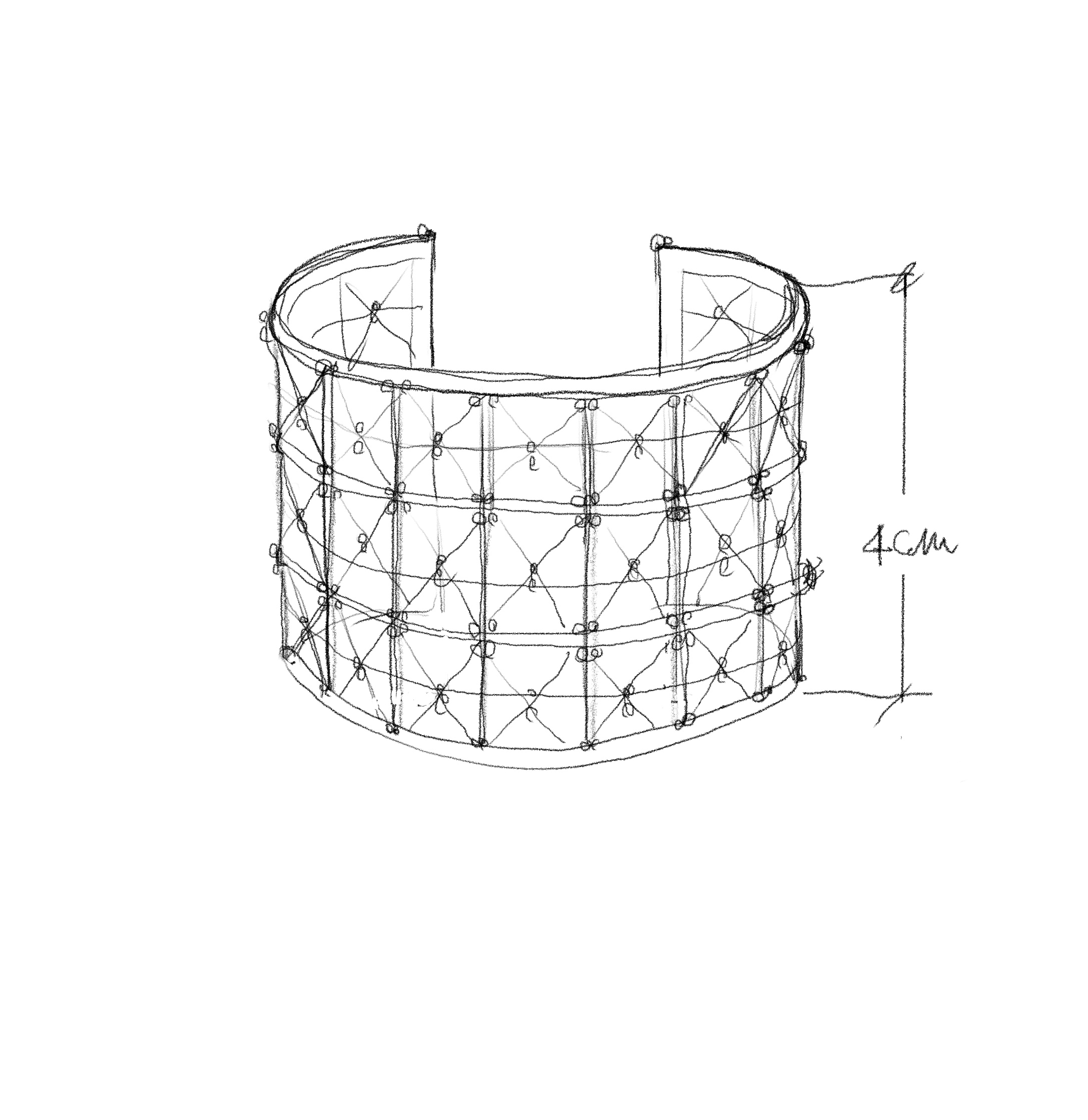 Il bracciale Gasometro celebra il sogno elettrico dell’archeologia industriale, reinventando le forme della celebre struttura nel quartiere underground Ostiense a Roma.