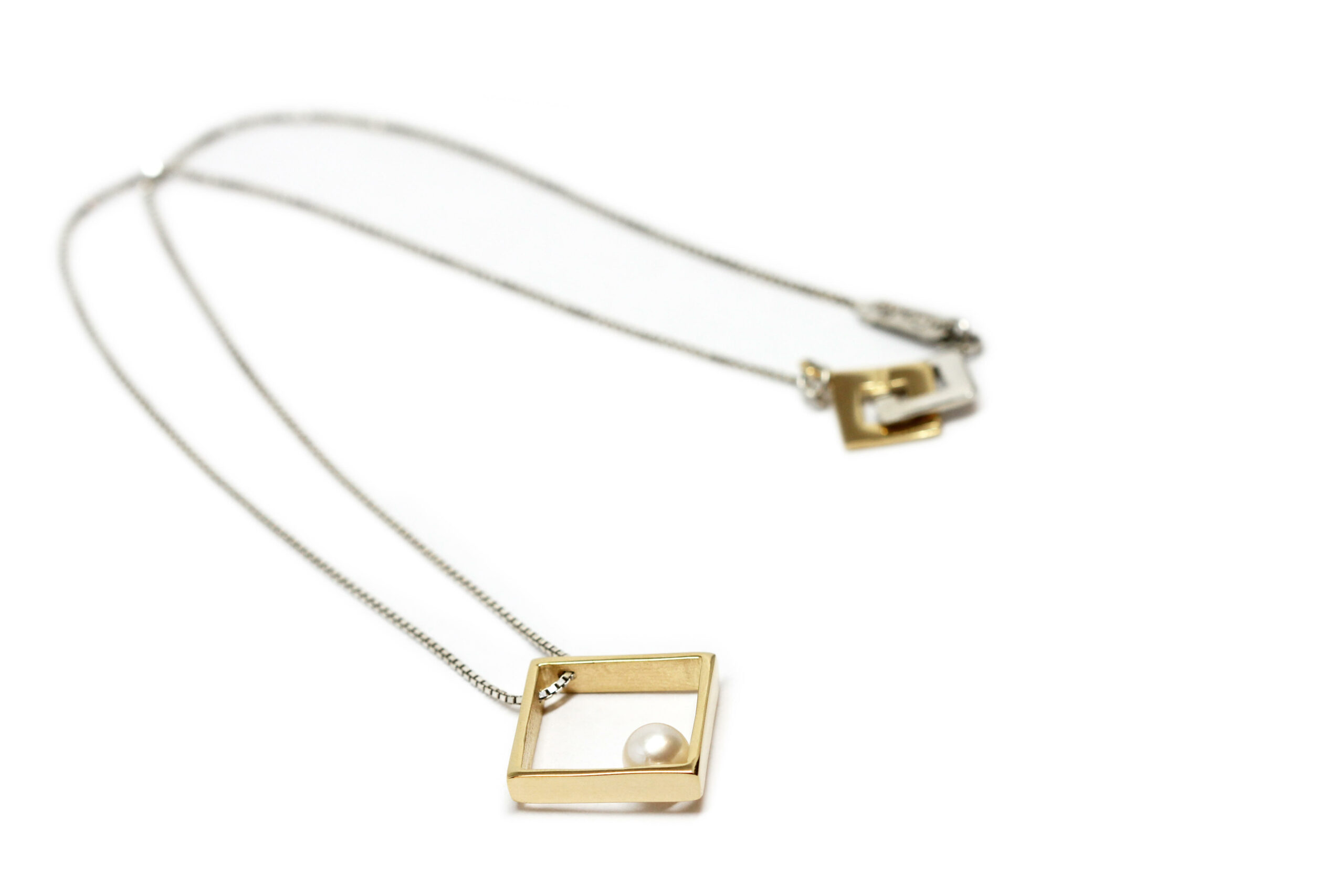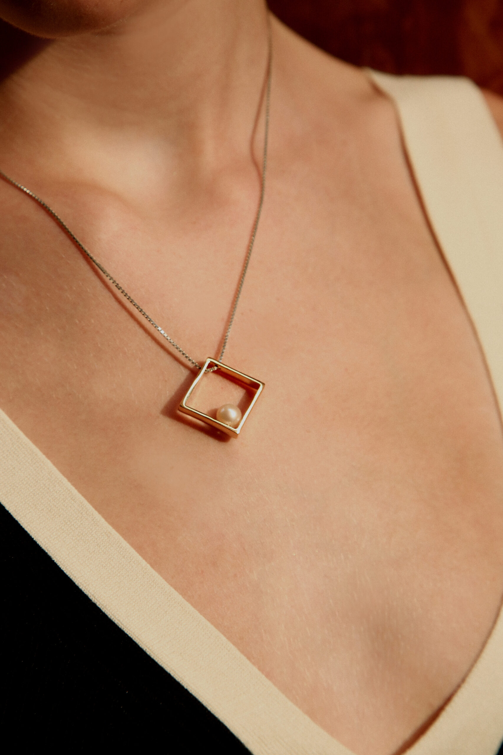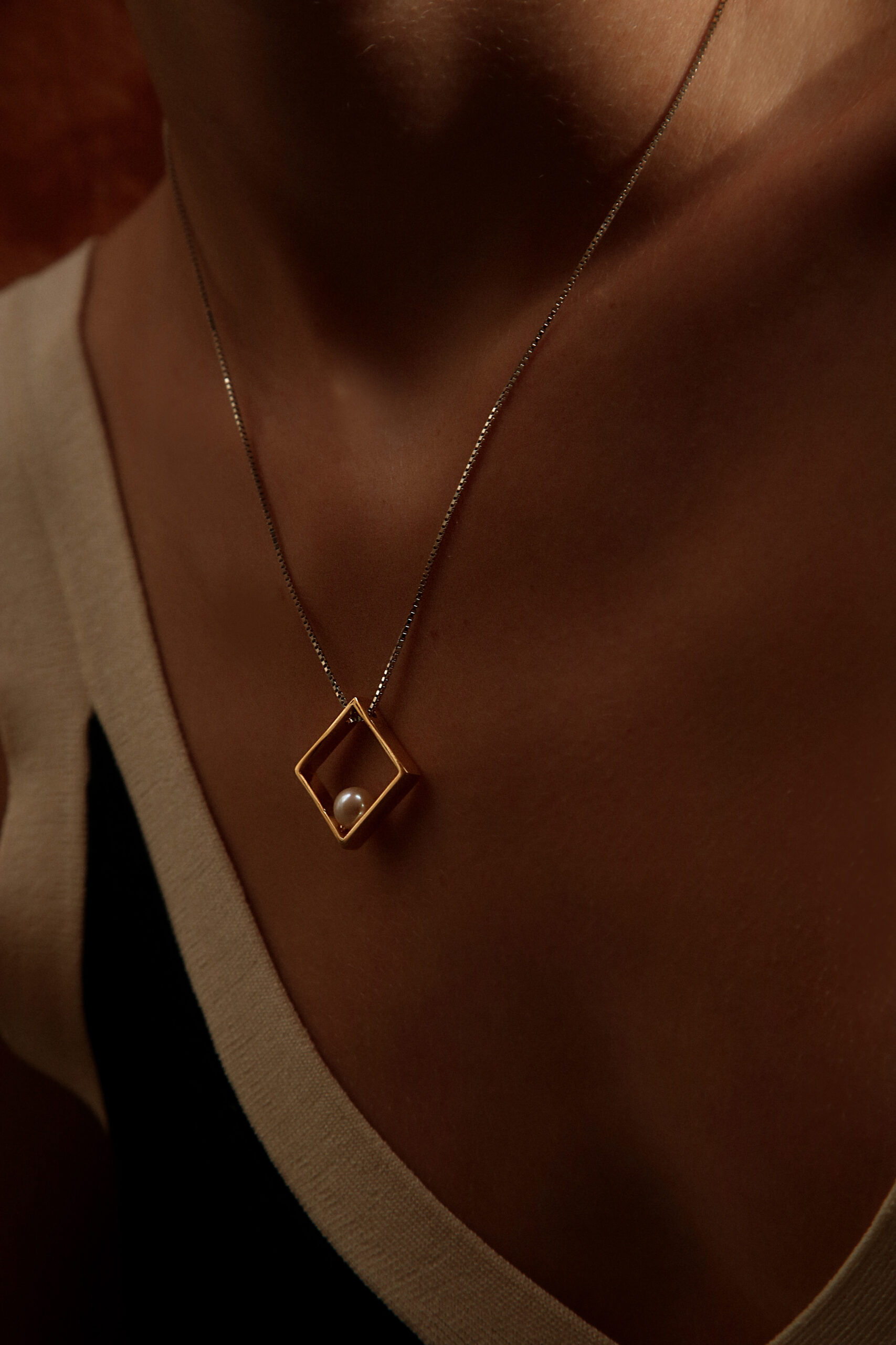Quando l'Estremo Oriente incontra linee minimali: il nostro ciondolo Tokyo in bronzo dorato con perla è una sintesi unica di queste suggestioni.