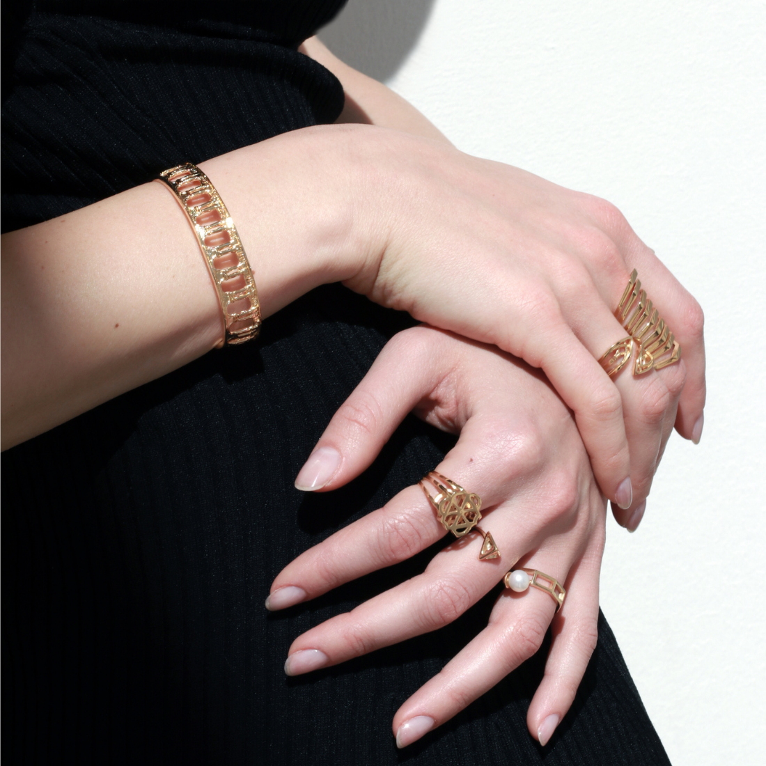 Each piece of jewellery is an architectural composition: the initial idea goes under a laborious project phase, made of