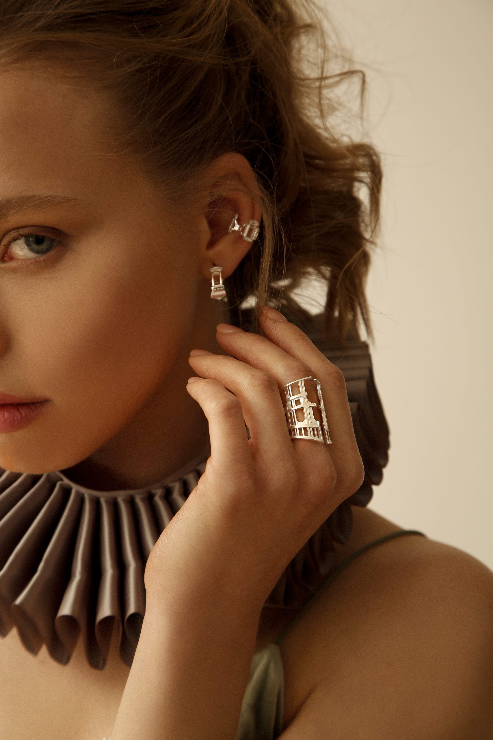 Each piece of jewellery is an architectural composition: the initial idea goes under a laborious project phase, made of