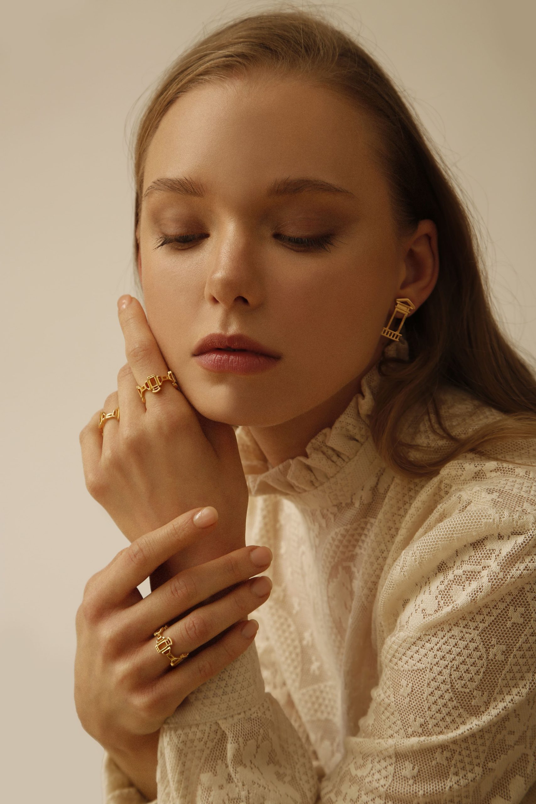Each piece of jewellery is an architectural composition: the initial idea goes under a laborious project phase, made of