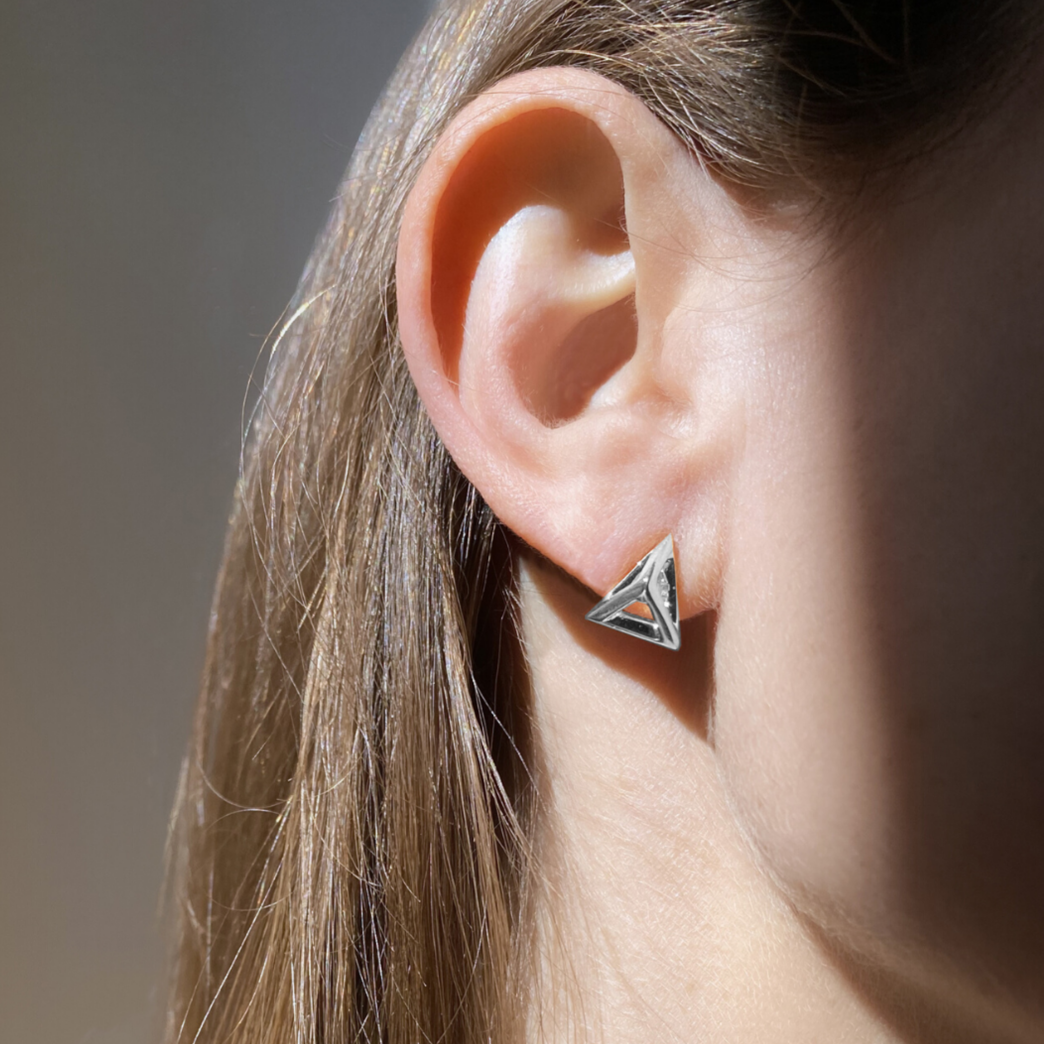Our Prismetti earrings in gold plated bronze are crafted in the shape of minimalistic prisms, adding a shiny iconic touch to your lobes.