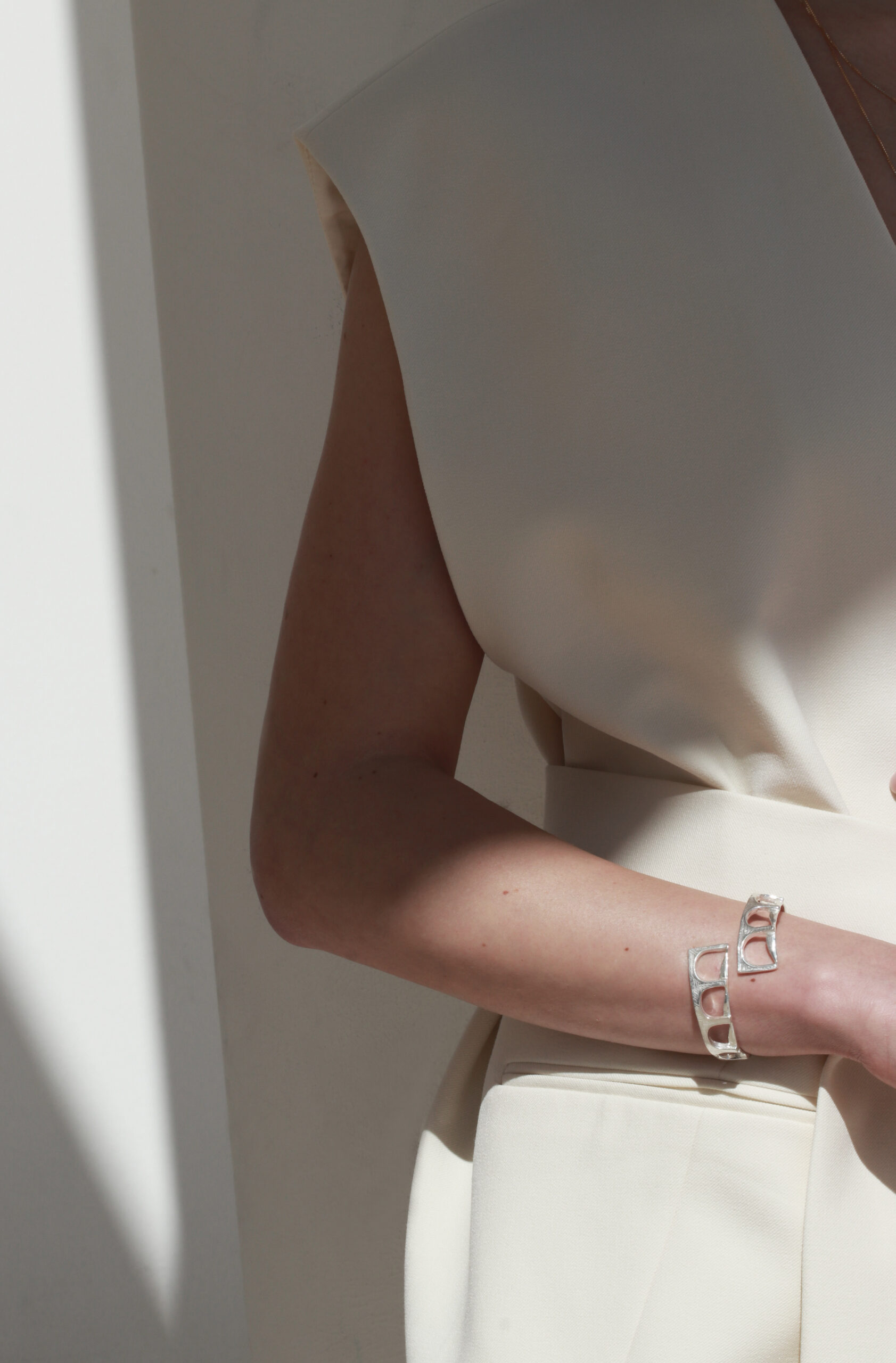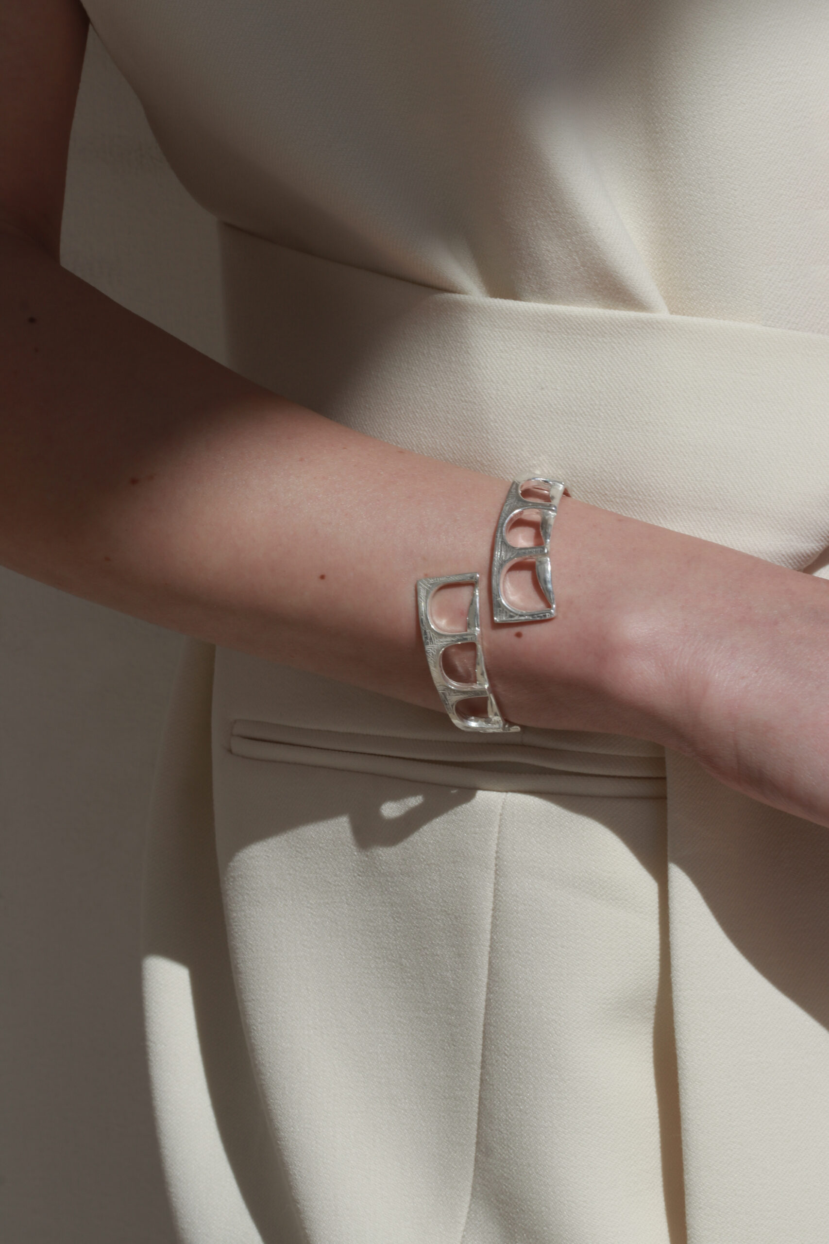 Monumentality becomes miniature. The endless arches of the Roman Aqueduct gracefully wrap themselves around this minimalist cuff, preserving all its classical appeal.