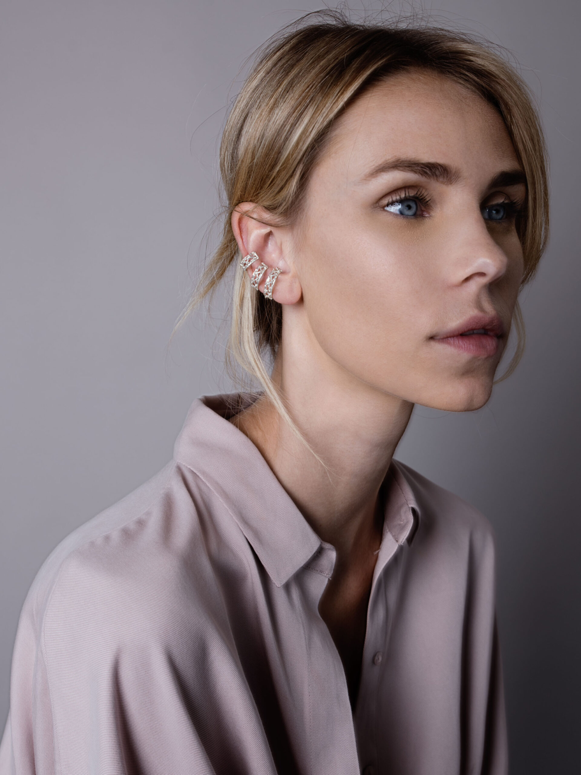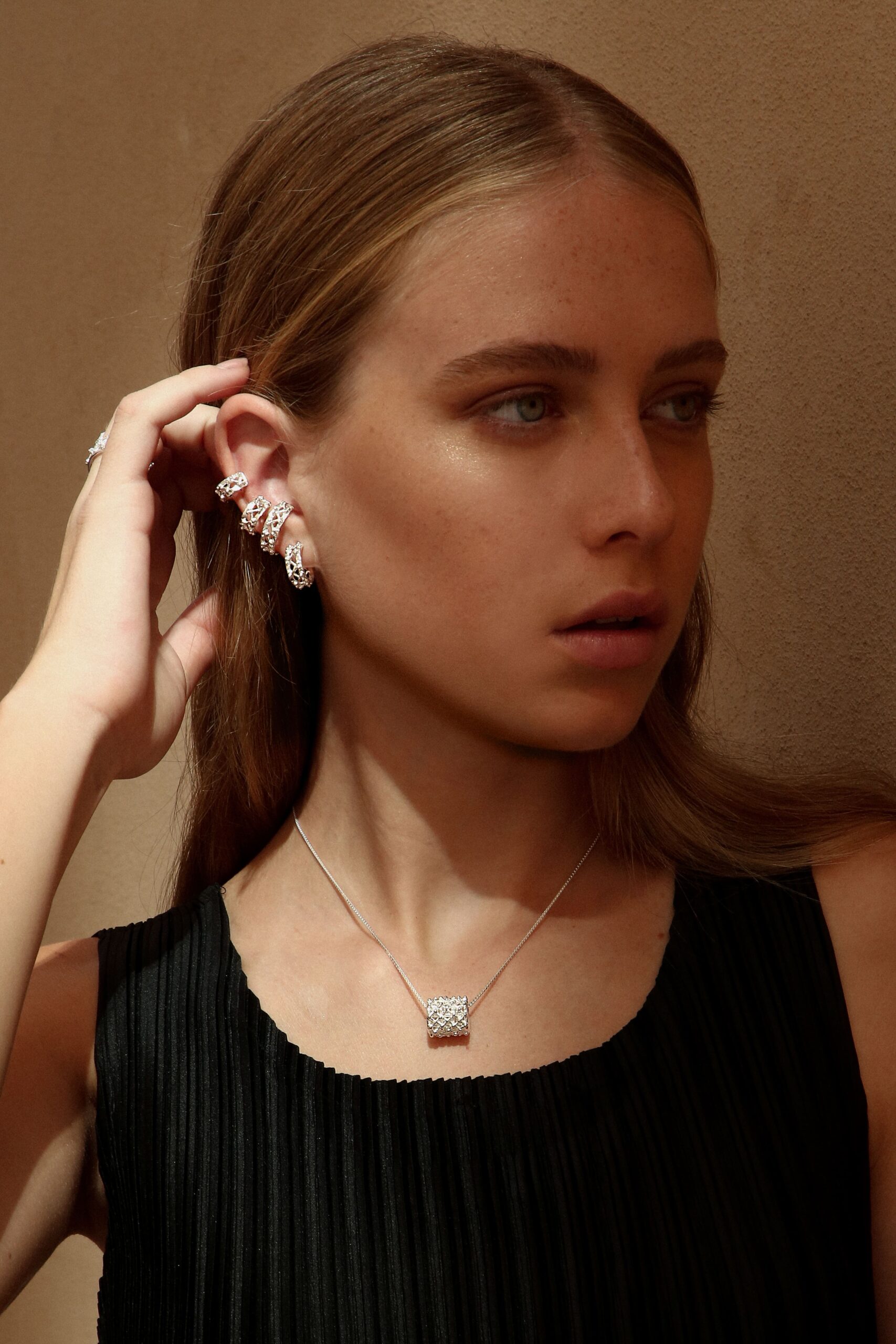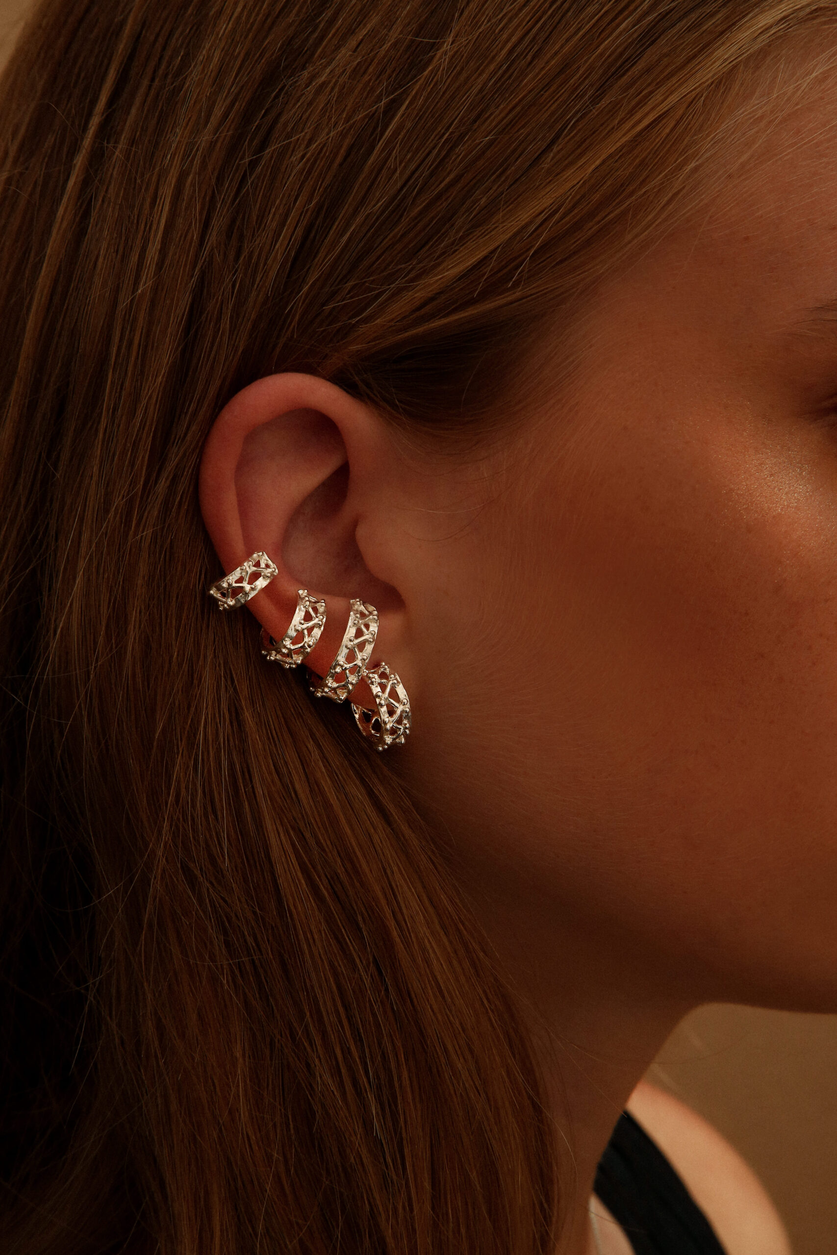 Contemporary and unusual vibes for our sparkling ear-wrapping Beam mono earring in 925 silver sterling plated bronze, inspired by industrial beams.