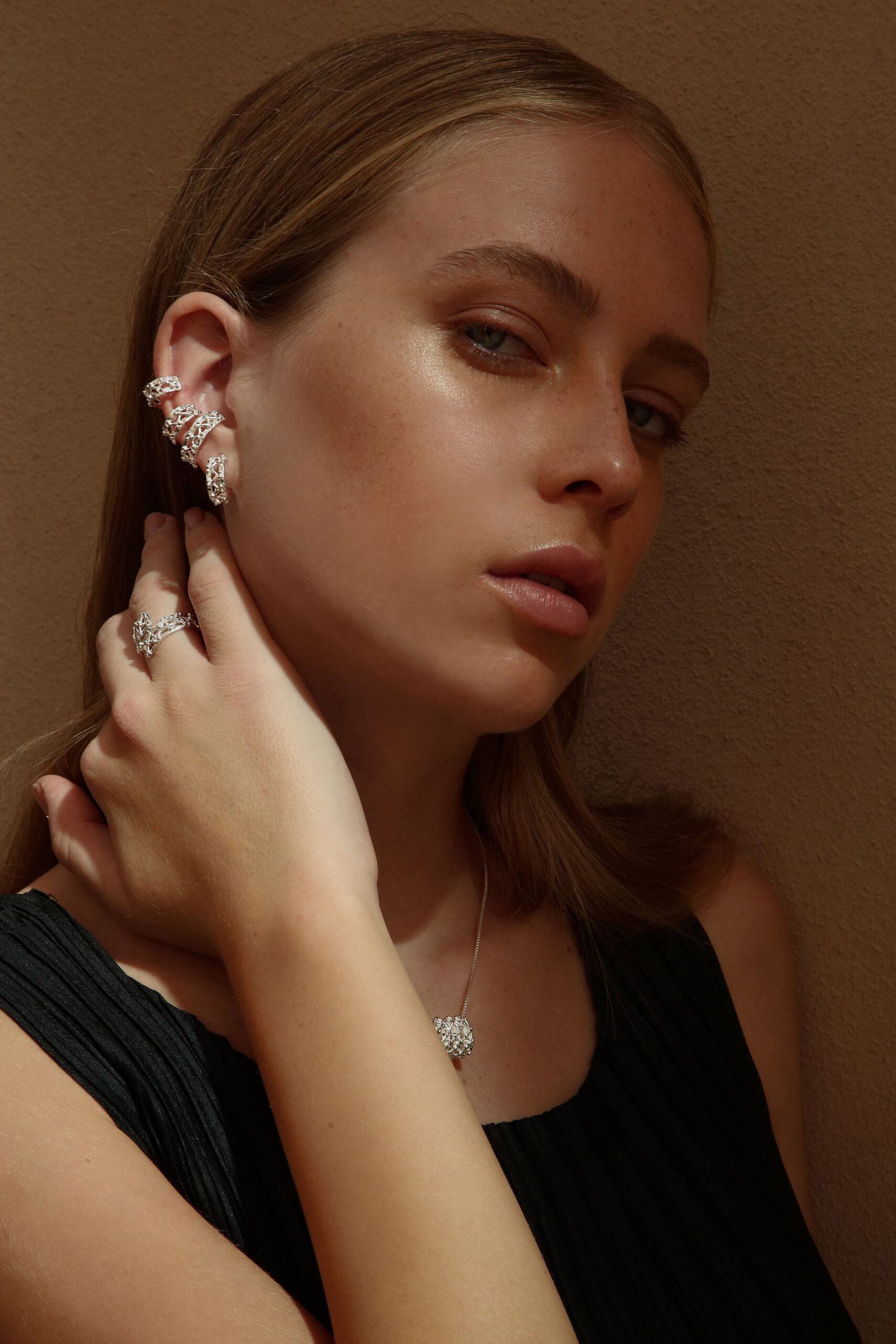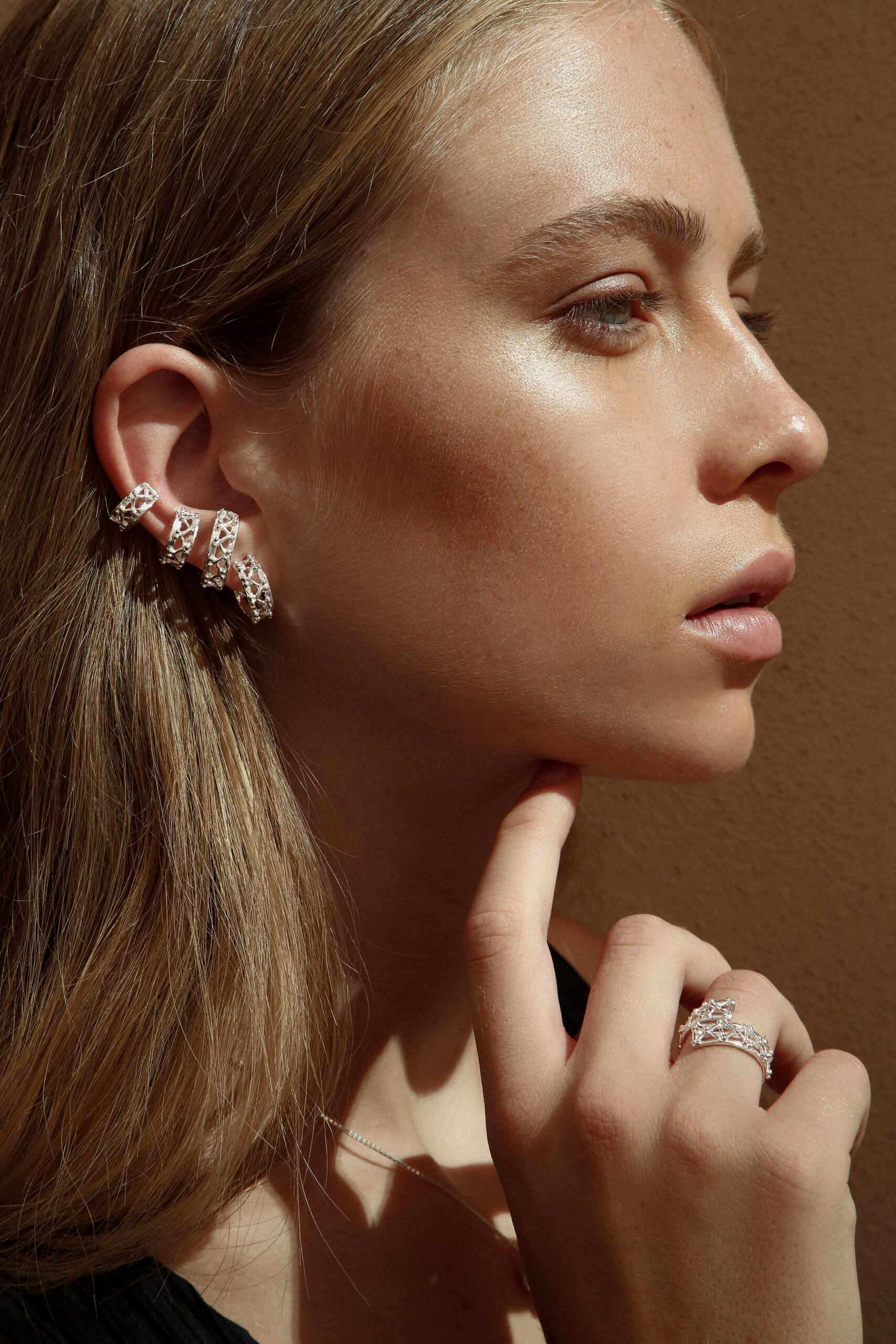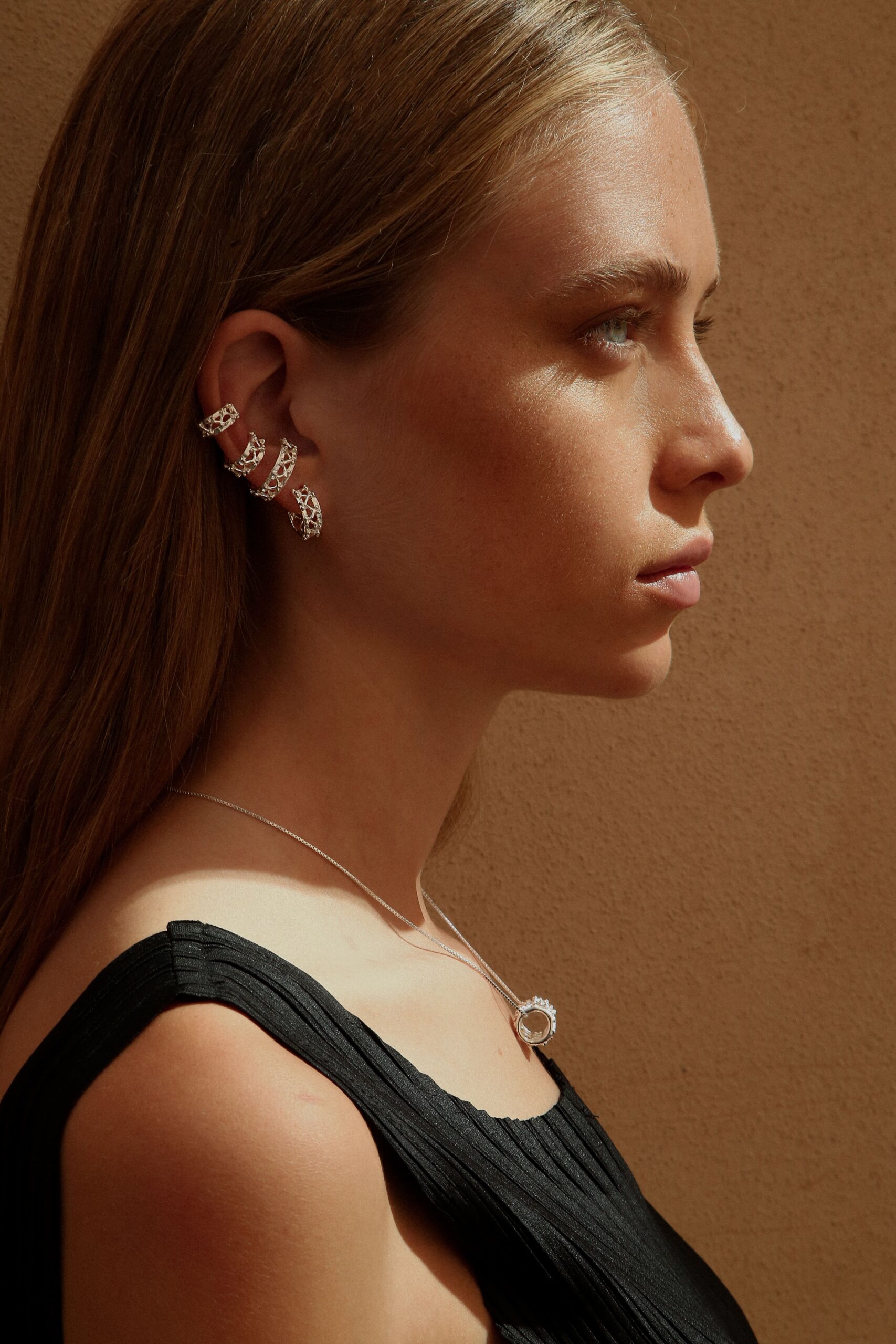 Contemporary and unusual vibes for our sparkling ear-wrapping Beam mono earring in 925 silver sterling plated bronze, inspired by industrial beams.