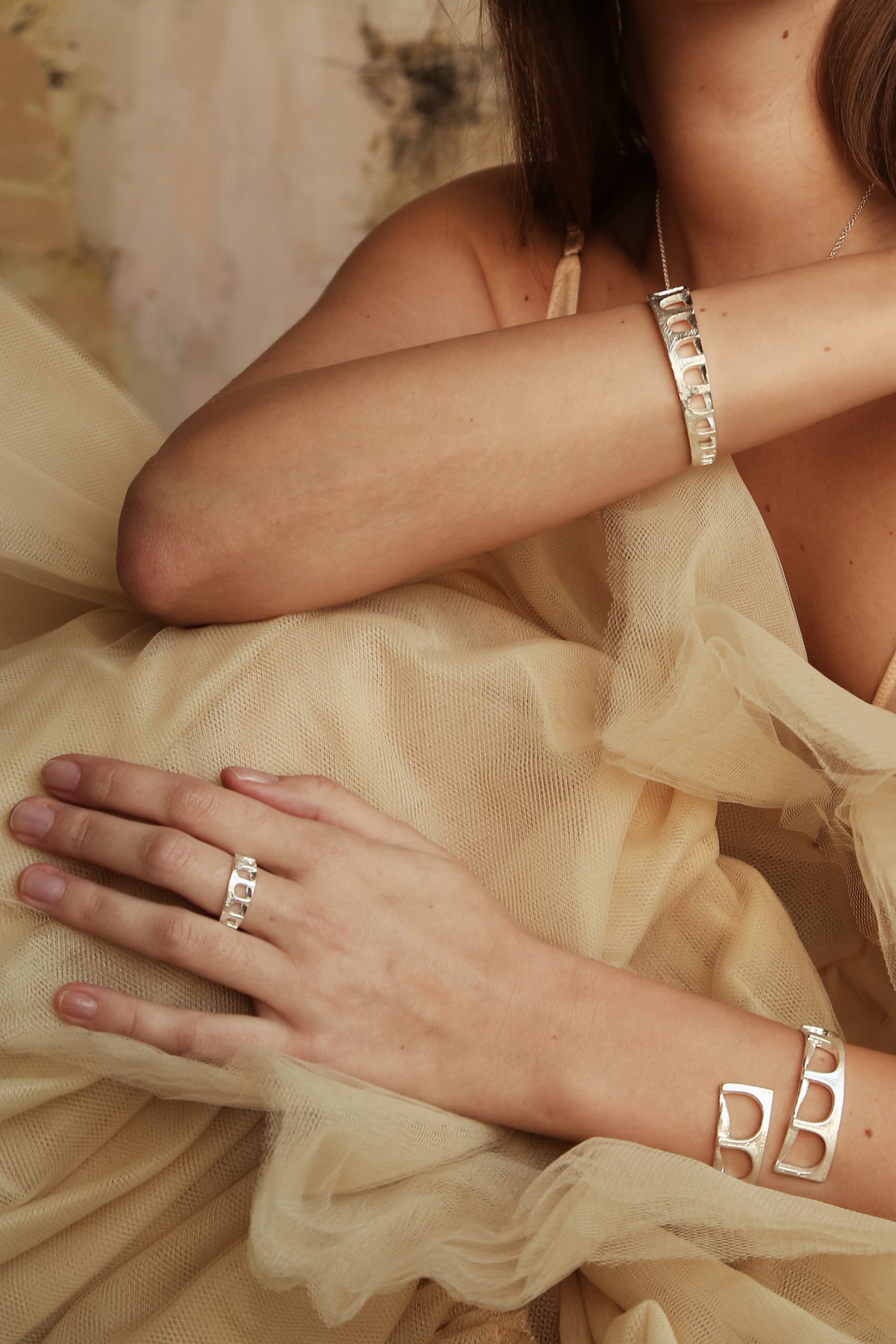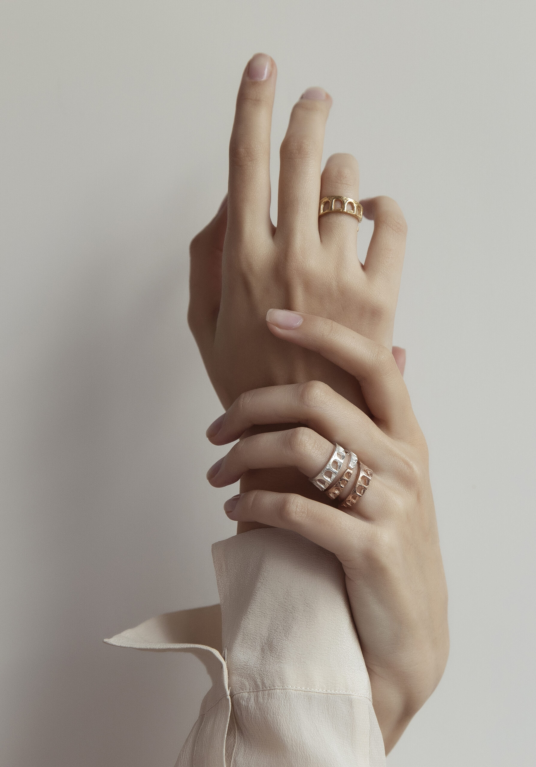 Each piece of jewellery is an architectural composition: the initial idea goes under a laborious project phase, made of