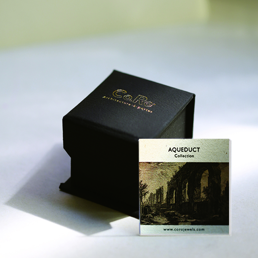 Sophisticated engineering intuition, fascinating landmark, limit and leap into the horizon: the Roman Aqueduct, with its arches stretching into the sunset light, is ingrained in the complex simplicity of this ring.