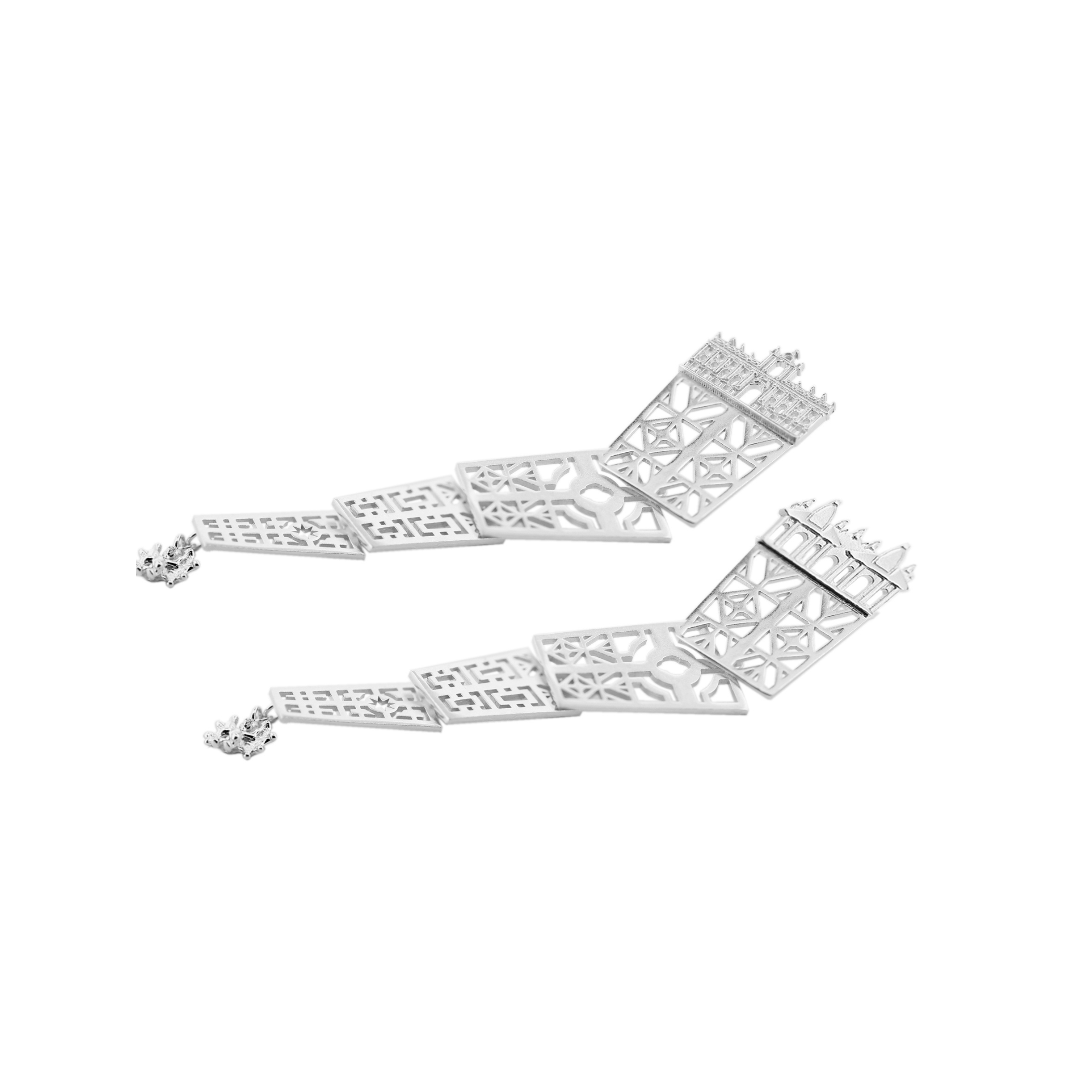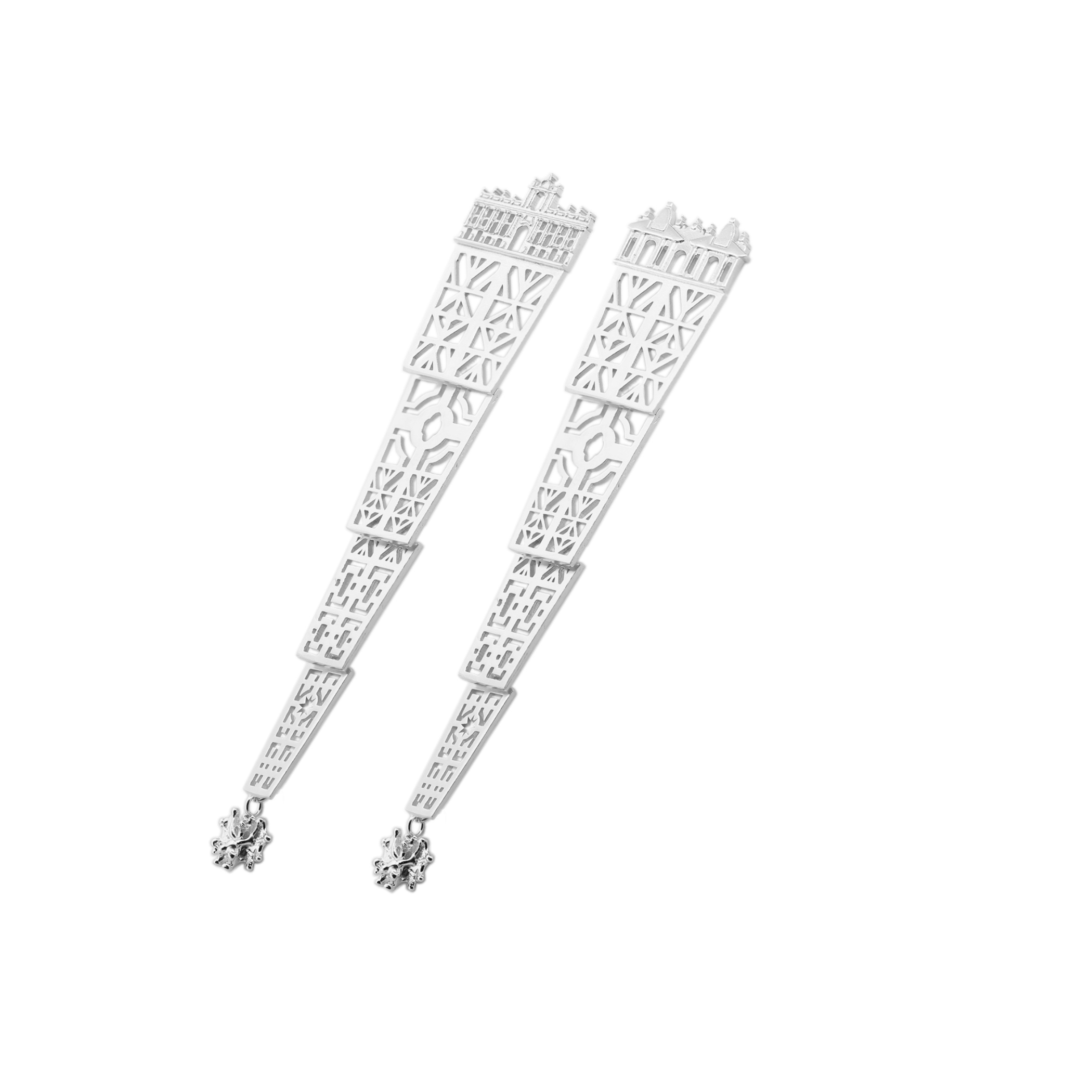 Like a tapestry of possible stories, this earring follows the pattern that decorates the secret gardens of Villa Borghese. Made of intertwining elements, diamonds, stars, and plays of shadows, it tells a story yet to be written.