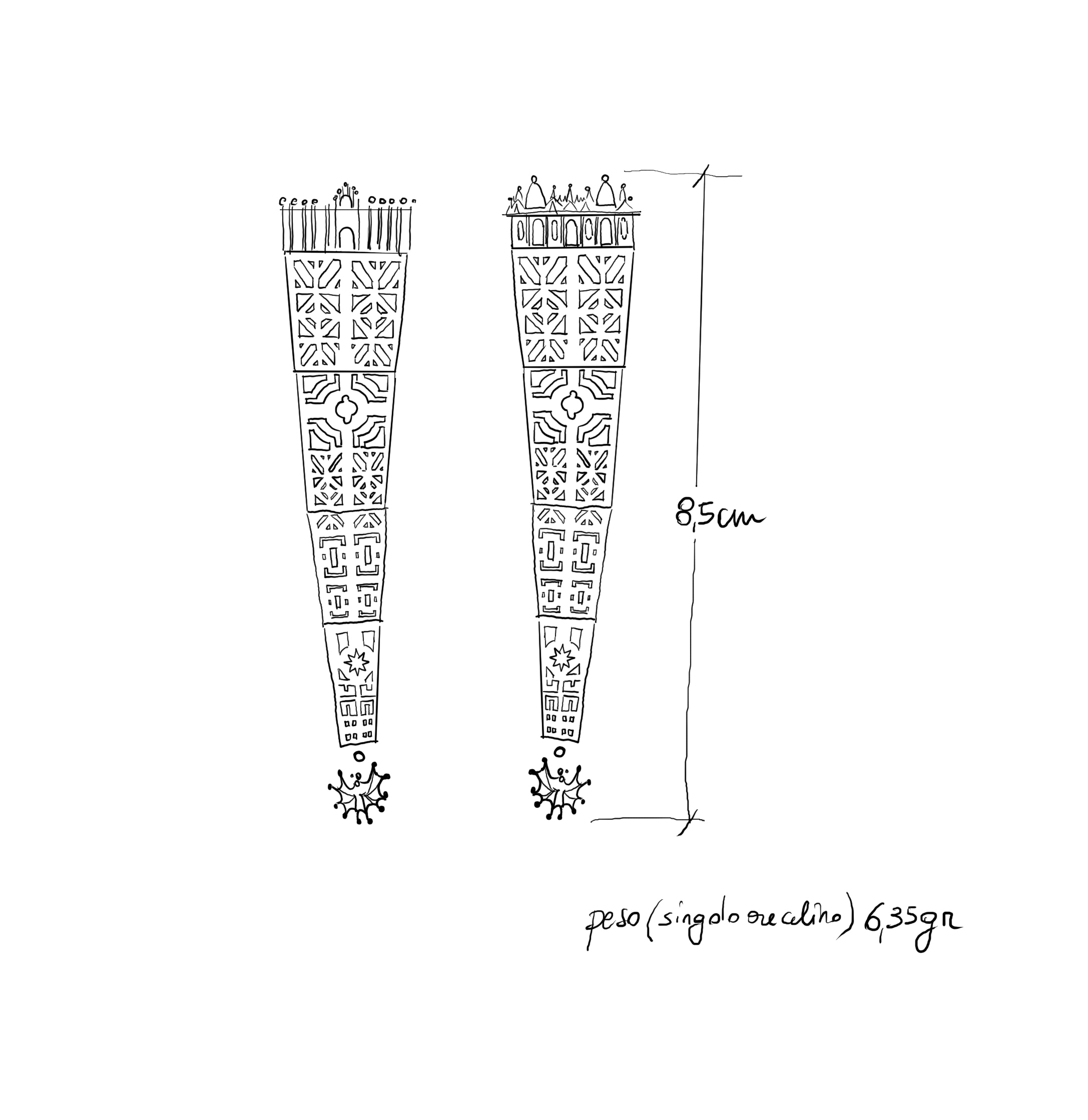 Each piece of jewellery is an architectural composition: the initial idea goes under a laborious project phase, made of