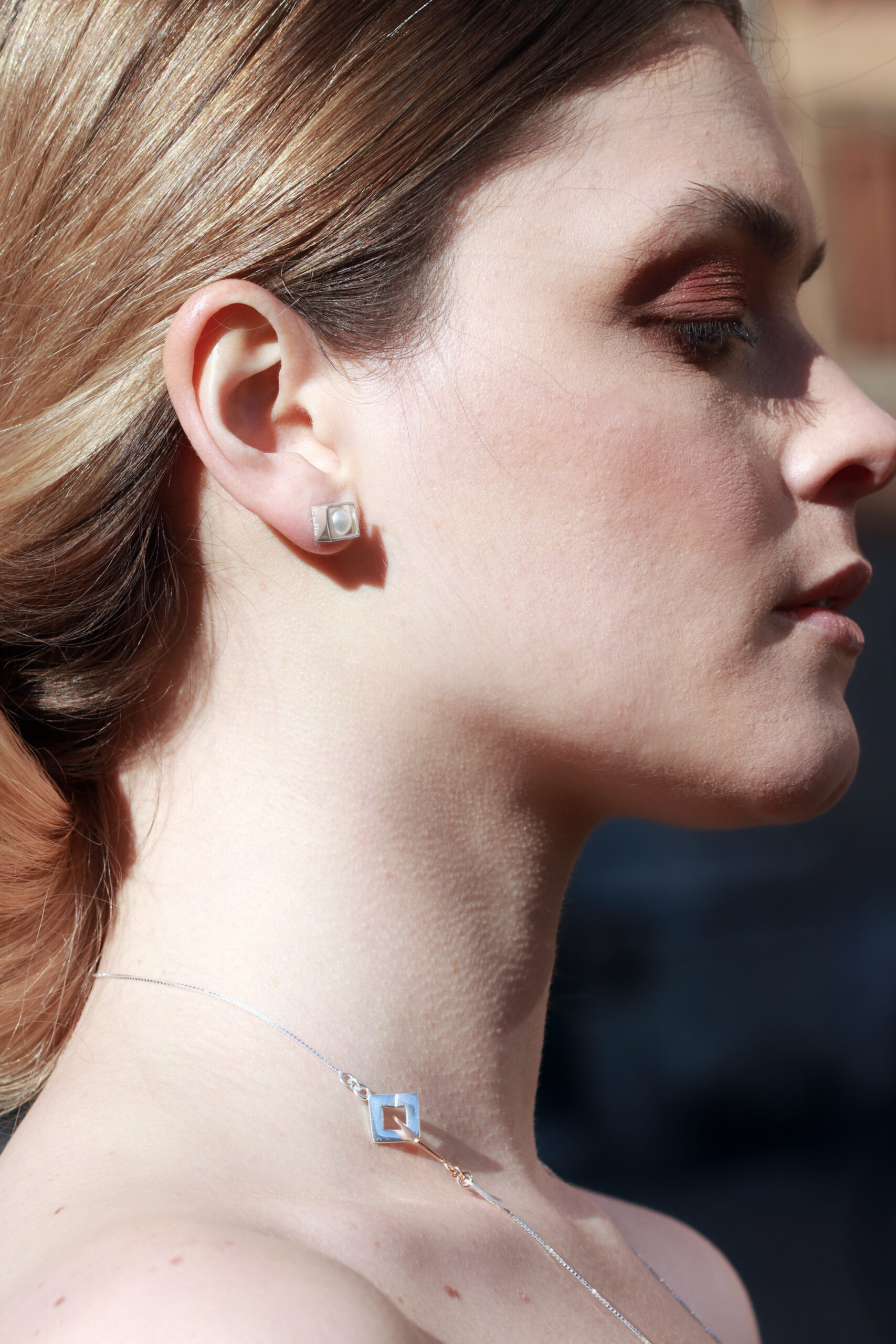 The beauty of a pearl enshrined in essential geometry. These earrings made of a few, fine details embody the Japanese sense of beauty: a dazzling instant that flies away.